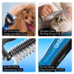 Onecut Pet verzorging borstel en metalen kamcombo, pet verzorging hark en borstels voor kleine, middelgrote en grote honden dubbelzijds deshedding -gereedschap verwijdert knopen en verward haar (rood)