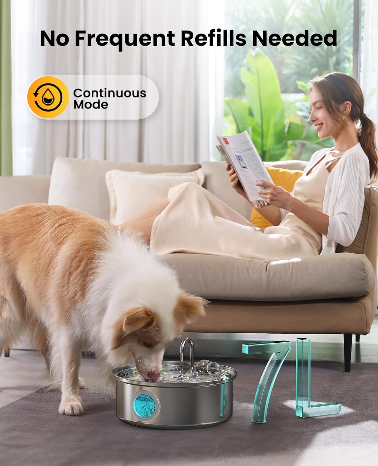 Oneisall hondenwaterfontein, 7l/230oz/1.8g rustige hondenfontein waterkom, roestvrijstalen hondenwaterfontein met visueel waterniveau en drievoudige filtratie voor grote medium kleine rashonden huisdieren