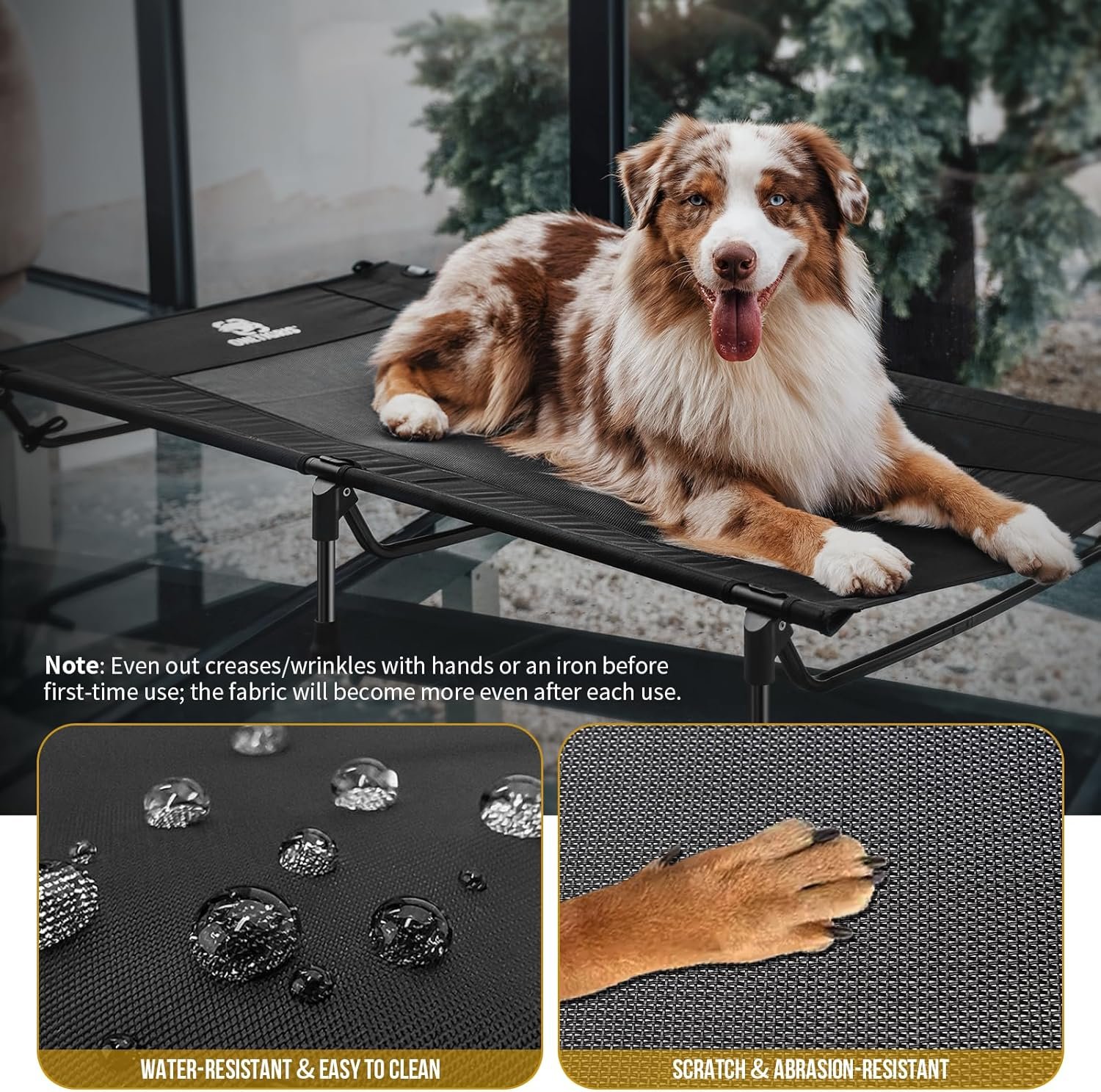 Handig en praktisch: 5 minuten en er is geen gereedschap nodig om dit gesuspendeerde hondenbed te monteren of te demonteren. Ideaal voor gebruik thuis, pickniceren, kamperen, gehoorzaamheidstraining, enz