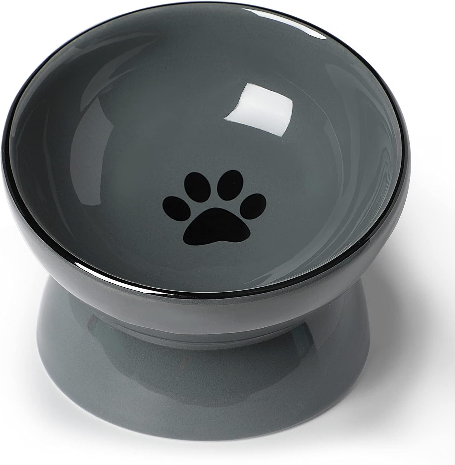 Ontube keramiek verhoogde kattengerechten of kleine hondenkom, huisdiervoedsel of waterkommen, 5,3-inch 10 oz (grijs)