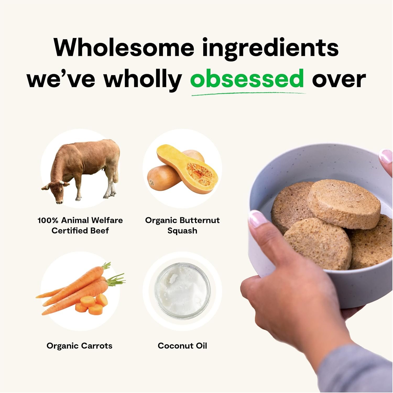 Humanely Sourced Beef: Ons glutenvrije recept is gemaakt met een mix van menselijk verhoogde 100% met gras gevoed rauw rundvlees en functionele ingrediënten zoals biologische bladgroen en kokosolie, zodat je je goed kunt voelen over het voedsel dat in de kom van je hond zit.