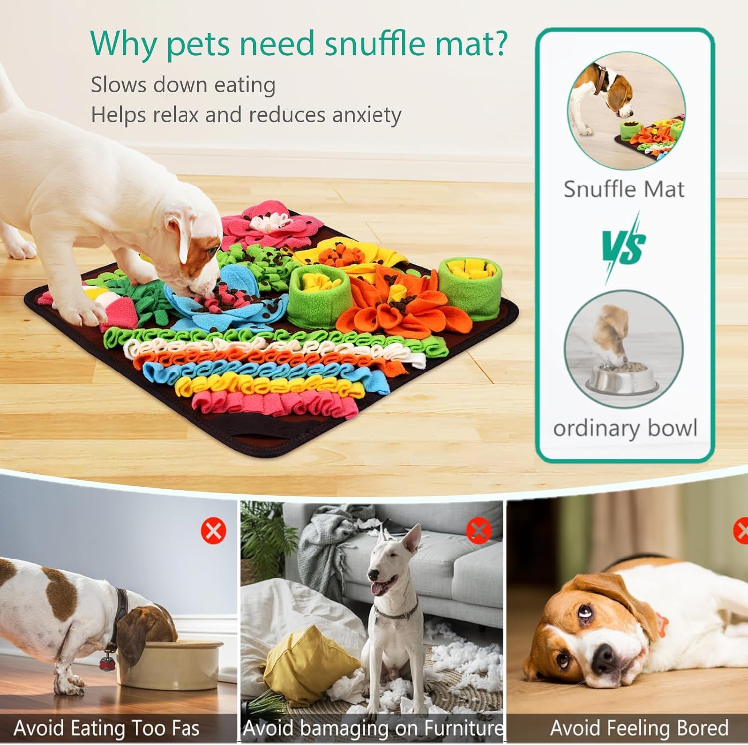Vertraag effectief het eten van de hond: de Snuffle Mat van de hond is ontworpen om het eten te vertragen door de tijd te vergroten die uw hond besteedt aan het zoeken naar traktaties, het voorkomen van overeten en potentiële gewichtstoename. Deze functie is vooral gunstig voor honden die te snel eten.