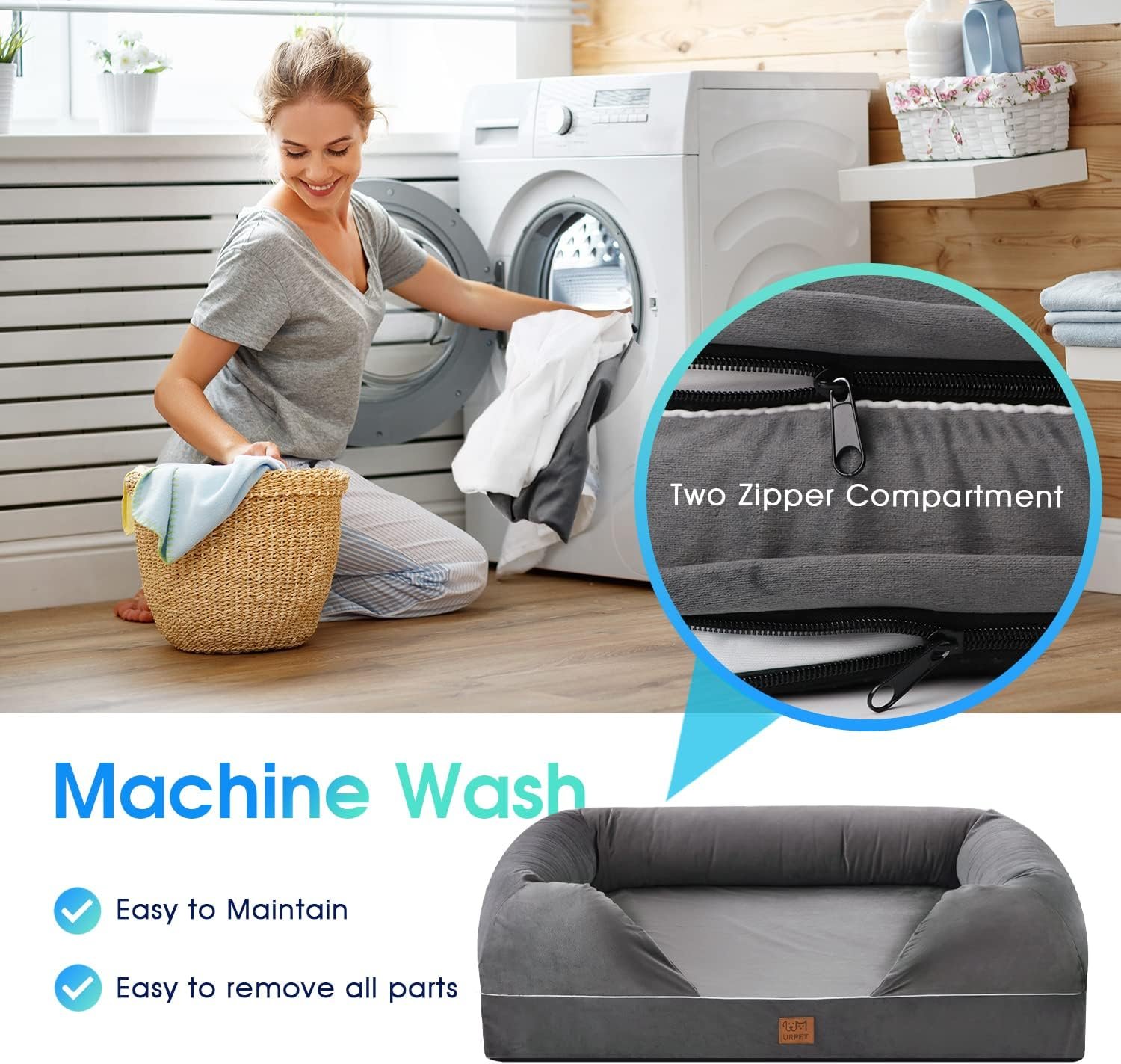 【Verbeterde comfortontwerp】 Het 4-zijdige bolsterontwerp verbetert het comfort en de veiligheid voor uw huisdier, waardoor een verscheidenheid aan comfortabele knuffelposities biedt. Het bolstervormige kussen is diep opgevuld om het hoofd en de nek van uw huisdier te ondersteunen voor een meer rustgevende slaap. Het lagere toegangspunt beschermt de knieën van uw huisdier en maakt het gemakkelijk om in en uit te stappen.