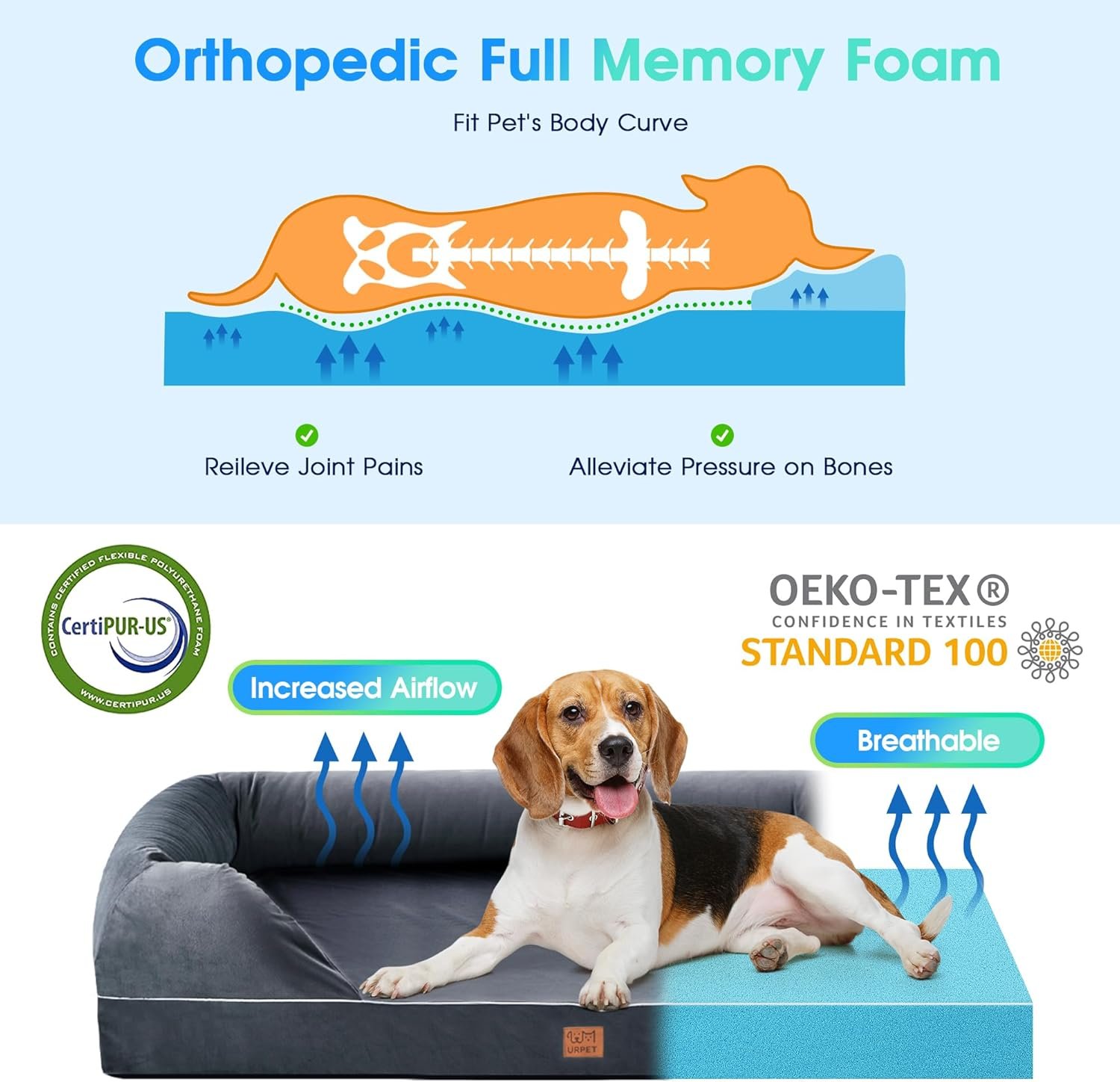 【Orthopedische ondersteuning】 Onze orthopedische hondenbus is ontworpen om uw huisdieren een ongeëvenaarde ondersteuning te bieden voor een diepe slaap. Slaapgebied Hoge dichtheid geheugenschuim helpt het gewicht gelijkmatig te verdelen en biedt de perfecte hoeveelheid drukverlichting en gewrichtssteun en gewrichtsondersteuning