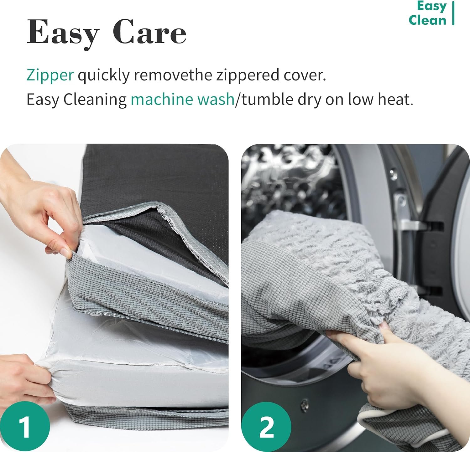 Waterdicht en gemakkelijk te reinigen: maak je geen zorgen over honden die de hondenbank nat maken, omdat er een waterdichte laag is onder het pluche oppervlak van de hondenbank, die vloeibare lekkage kan voorkomen en eierschuim volledig kan beschermen. Het wasbare hondenbeddeksel is gemakkelijk te verwijderen, alleen in de wasmachine, waardoor het er snel fris en schoon uitziet