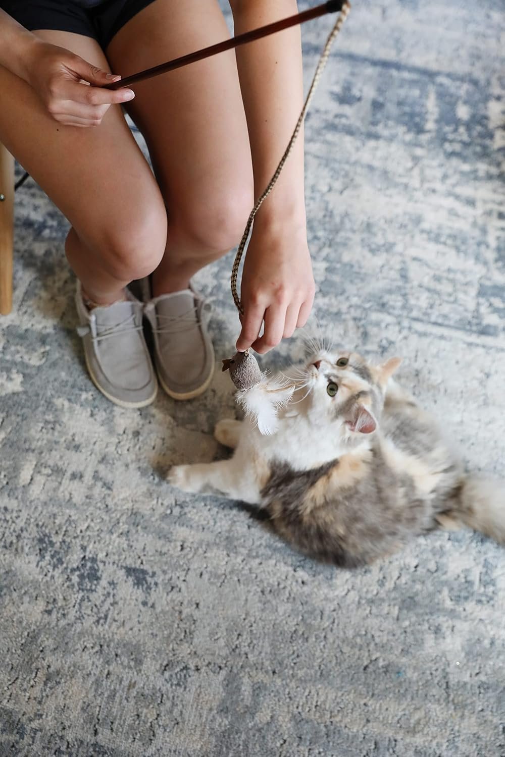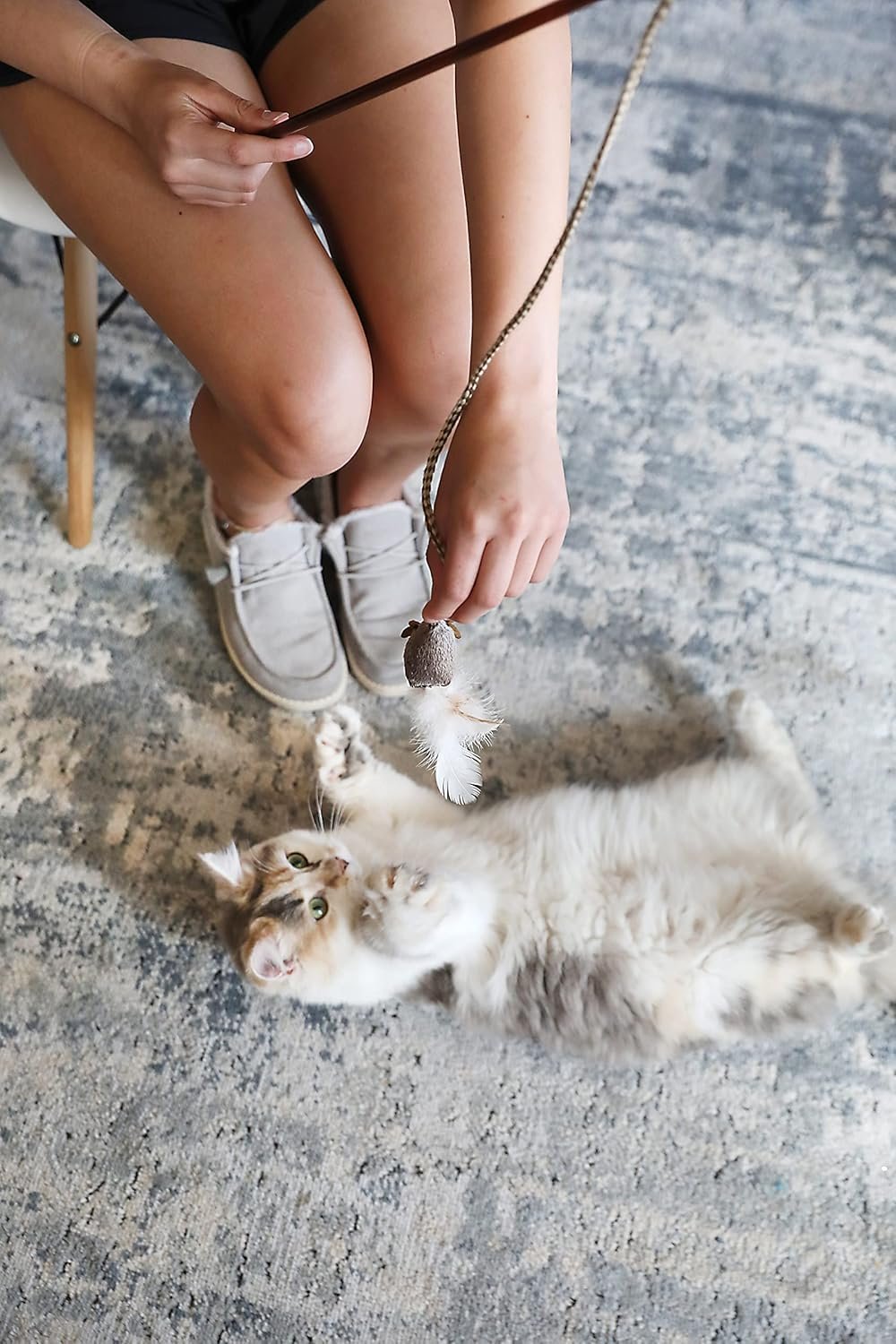 Ourpets Play-n-SQuak Tedededed & Federed Play Wand Cat Toy, voor alle rassengroottes