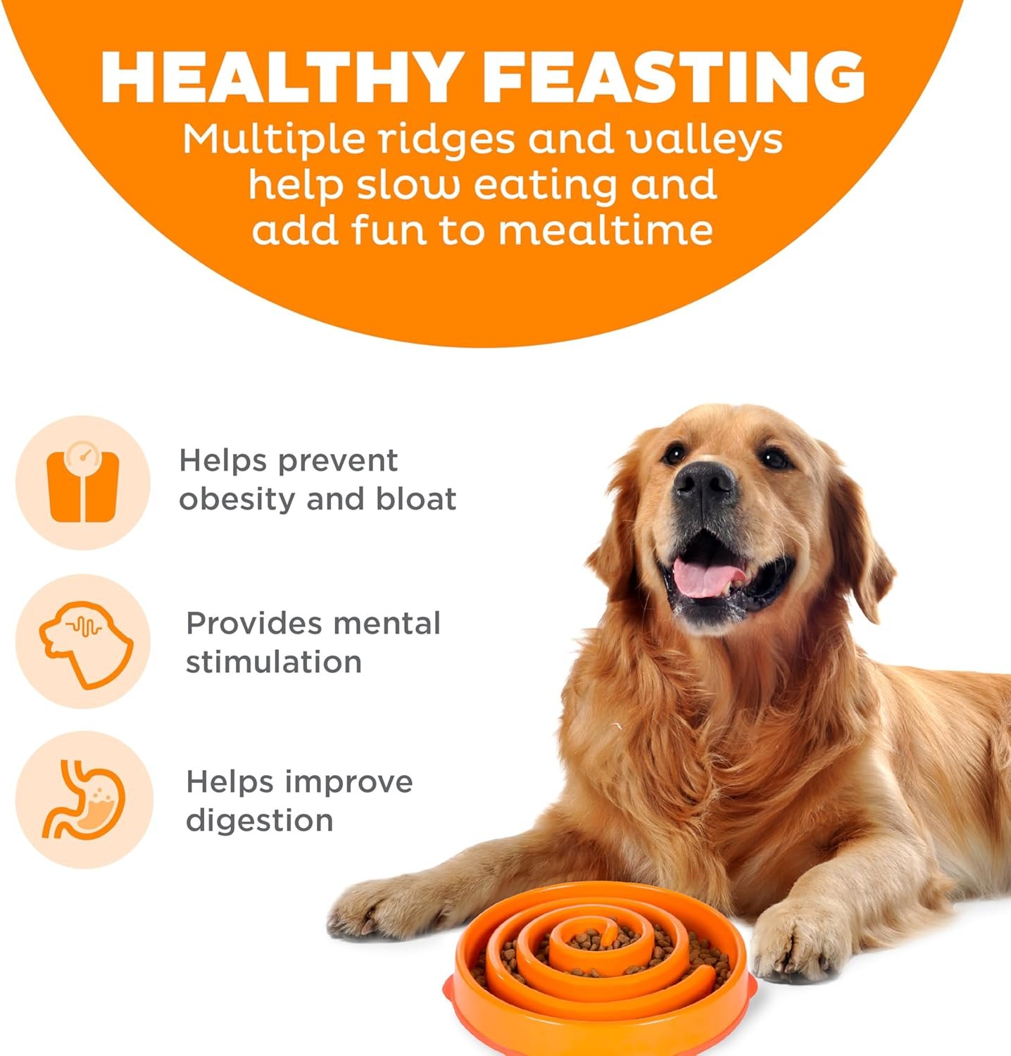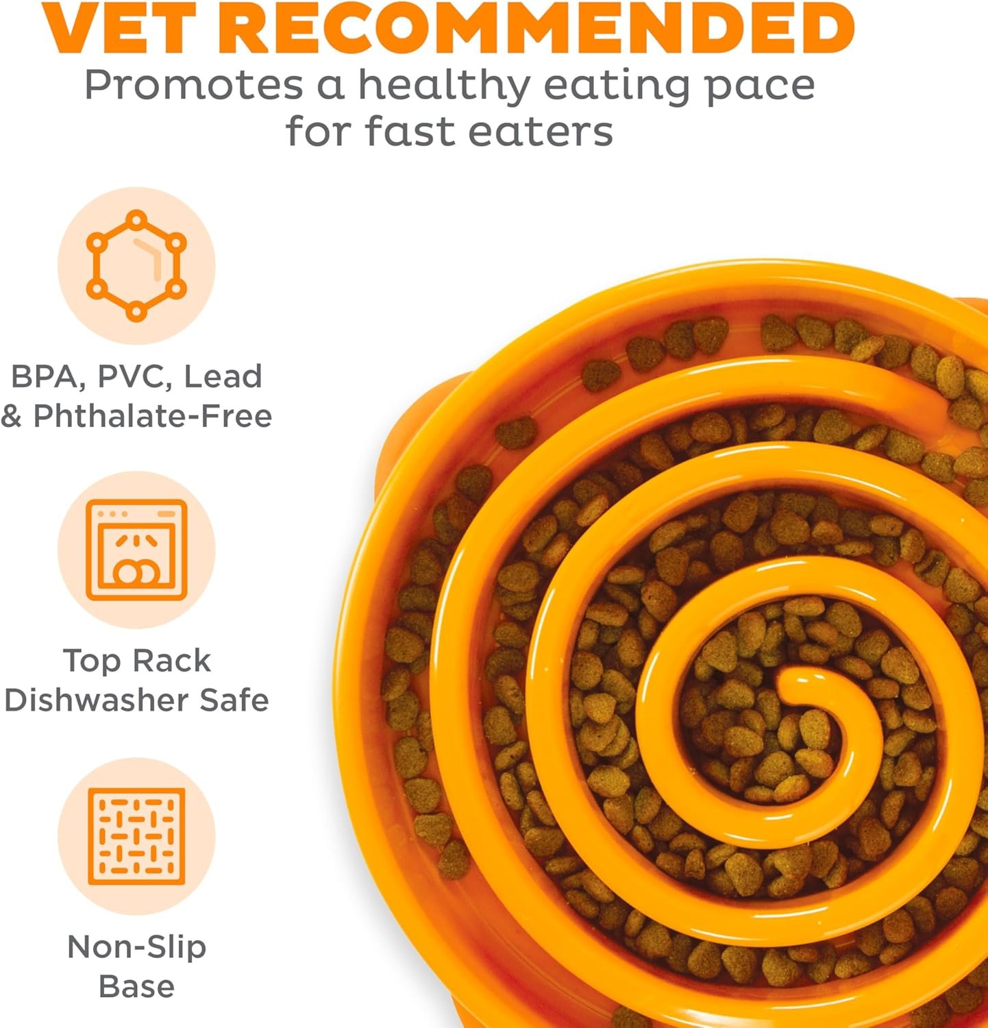 Outward Hound Fun Feeder Slo Bowl, grote langzame feeder hondenkom, 4 kopjes, oranje