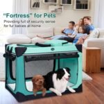 Duurzaam en veilig: het zachte zijdige krat is gemaakt van hoogwaardige materialen, inclusief een stevig stalen frame en een duurzame Oxford-stoffen stof, die langdurig gebruik zorgt en uitstekende bescherming biedt voor uw huisdier. Het bevat ook een hondenriem om uw hond in de krat te beveiligen.