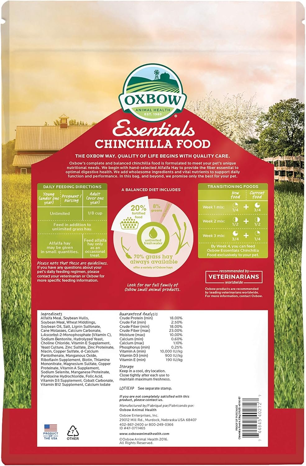 Oxbow Essentials Chinchilla Food, gemaakt met Oxbow Alfalfa, Vitamine en Mineraal Rijk voedsel voor chinchilla’s, Pet Pellets met kleine dieren, gemaakt in de VS, hoge vezel, 10 lb zak