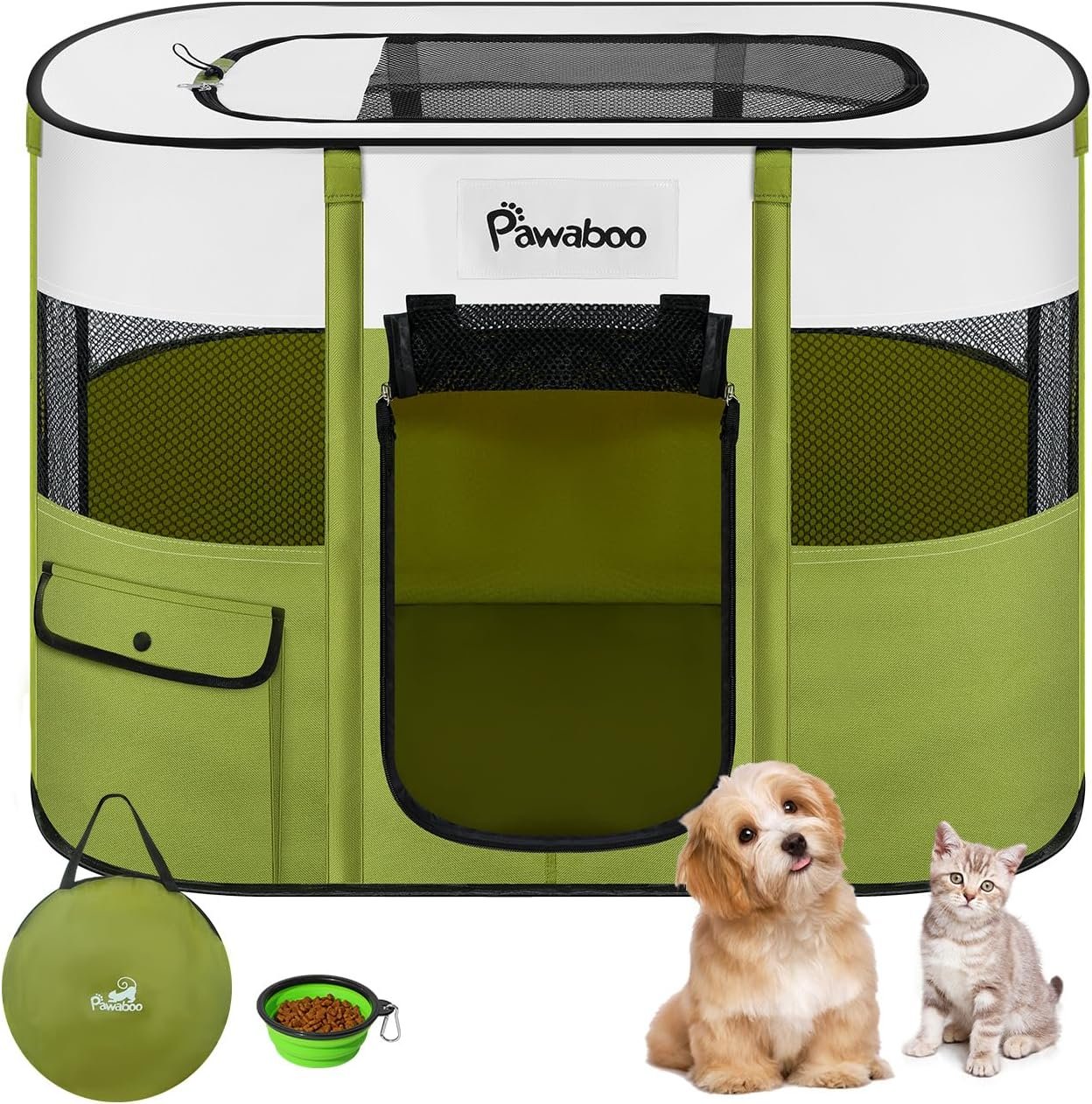 Pawaboo Pet Pladen for Puppy Cat Bunny, 600d Oxford Portable Foldable Dog Play Tent Kennel Crate voor binnencamping binnenshuis, komen met gratis draagtas en vouwkus, s, groen