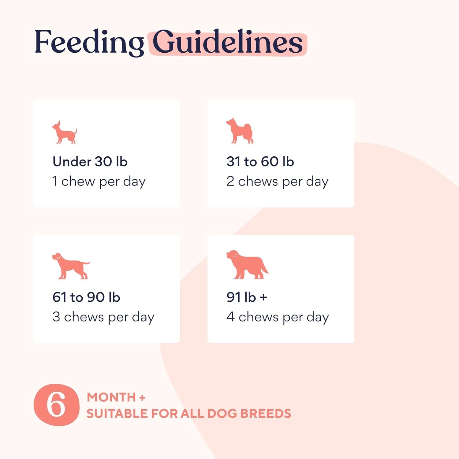 Smerig en gemakkelijk te verteren: onze gezamenlijke kauwtjes zijn ontworpen om zacht te zijn voor gevoelige magen, en bieden een eenvoudige, verteerbare manier om de gezamenlijke gezondheid van uw hond te ondersteunen. Met een kippensmaak waar ze van zullen houden, maken deze kauwen gezamenlijke zorg een plezierig deel van de routine van uw hond.