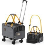 Pawzidea Pet Carrier met wielen 18x11x11 TSA Airline goedgekeurde katdrager voor 2 katten rollende hondendrager onder stoel rollende kattendrager reistas met telescopische handgreep, schouderband als hondenriem