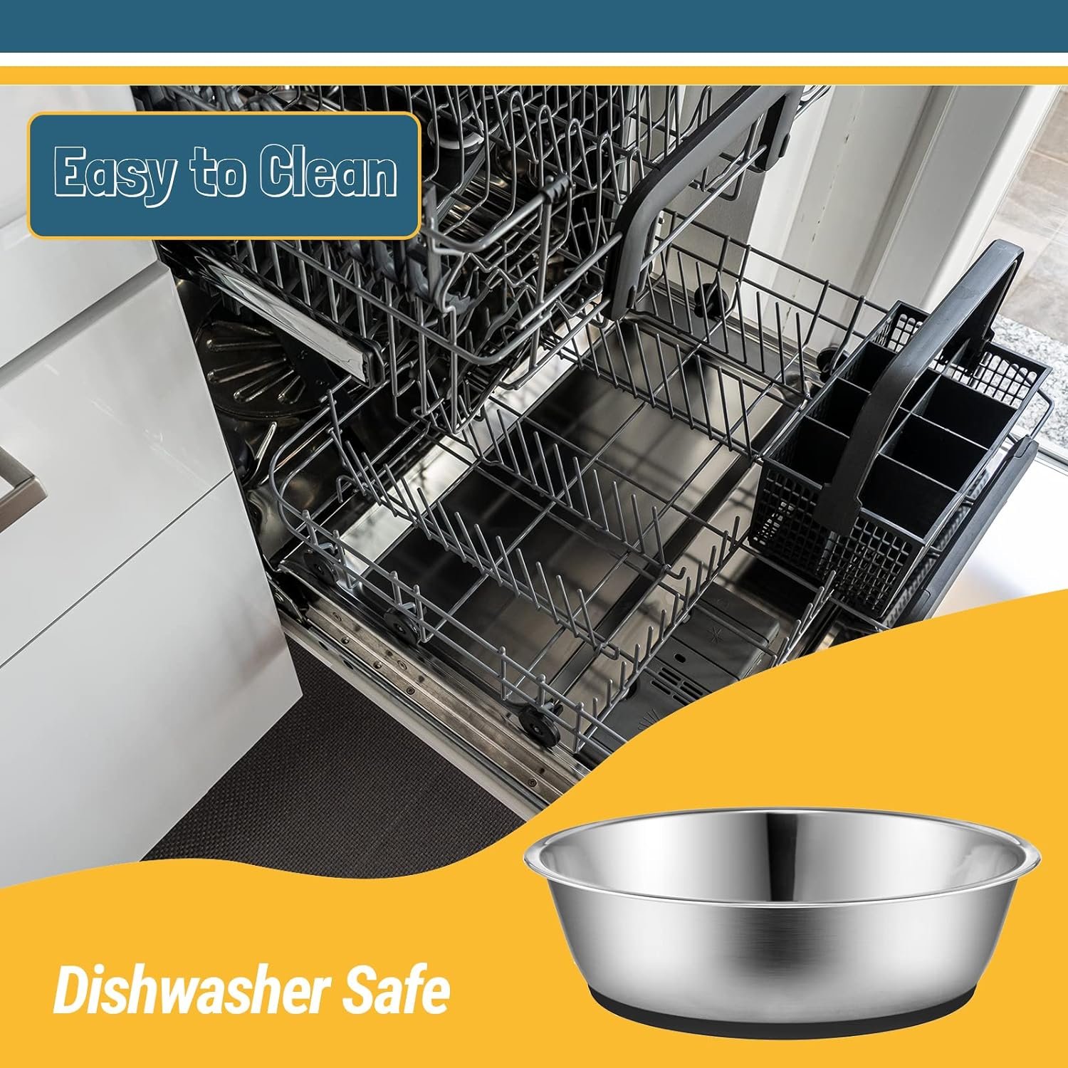 Niet-slip: de anti-slip siliconenbodem kan vloeren beschermen en voorkomen dat de kom glijdt terwijl uw huisdier eet. Geen dia, geen geluid