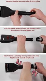 Verbeterde video om te laten zien hoe u kunt bevestigen: met de vac -chom -kit kunt u uw hond of kat met het hoogste gemak verzorgen. In deze kit krijg je het verzorgingsgereedschap, 3 verwisselbare kammen en een 46 -inch extensiefslang met universele adapter – bekijk de video links om te zien hoe je moet invoegen en draaien om een vacuümafdichting te maken.