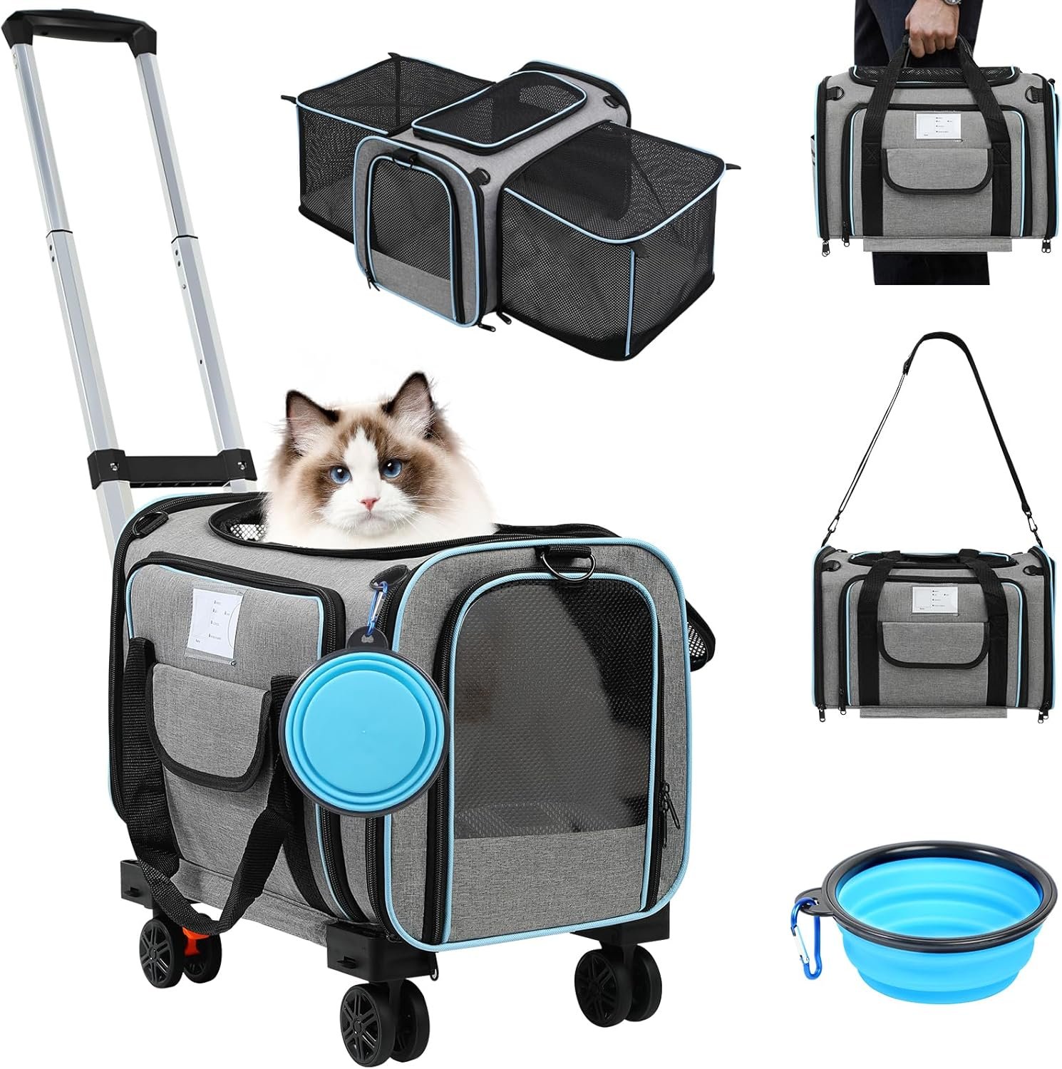 Pet Carrier Airline goedgekeurd, uitbreidbare huisdierkattendragers met wielen voor honden, door luchtvaartmaatschappij goedgekeurde kattenhondendrager, TSA goedgekeurde huisdierdrager in cabine, huisdierkattendrager zacht, kattenreisdrager (grijs)