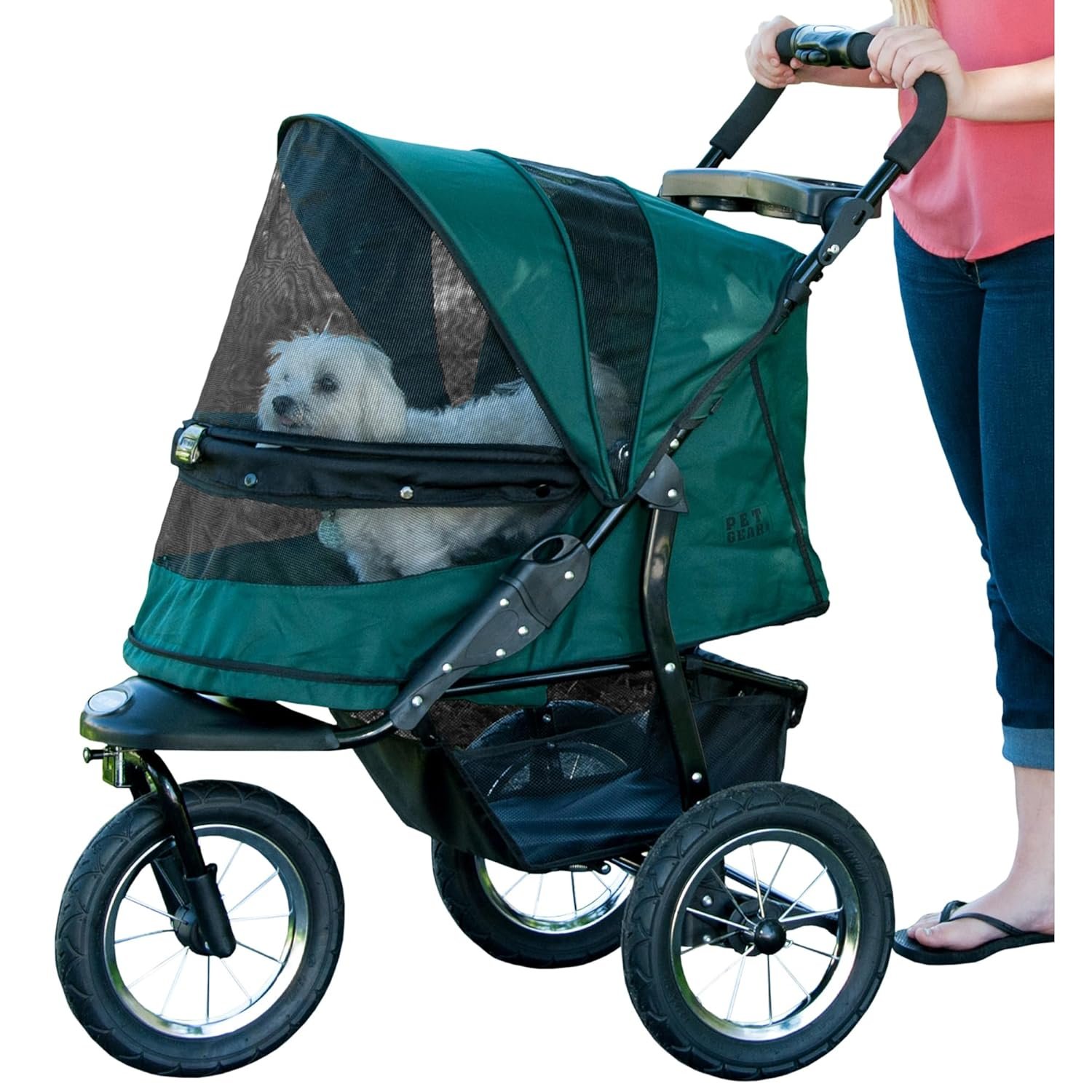 Pet Gear No-Zip Jogger Pet Stroller voor katten/honden, zipperloze ingang, luchtloze banden, eenvoudige vouw van één hand, bekerhouder + opslagmand New Forest Green