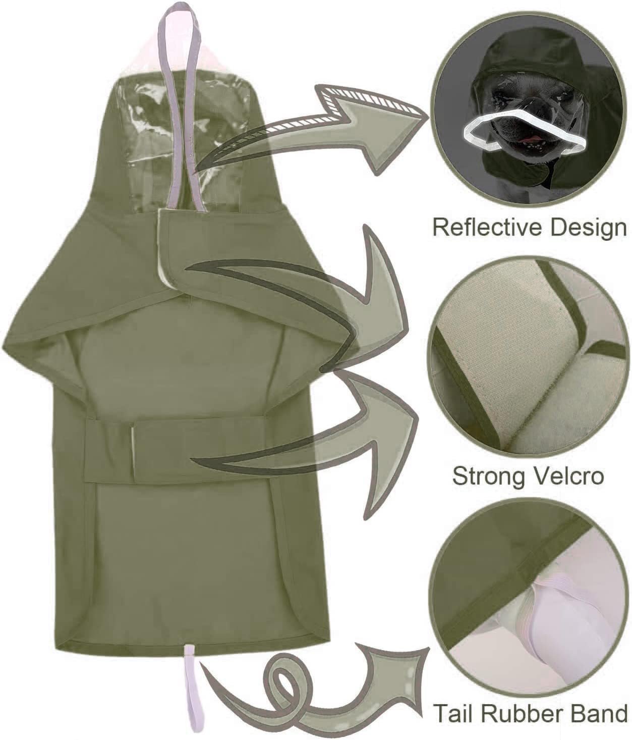 Pet Raincoat Packable Hooded Dog Rain Jacket Reflective Strips Lichtgewicht verstelbare Poncho voor kleine middelgrote honden Army Gree M (terug: 14 inch)