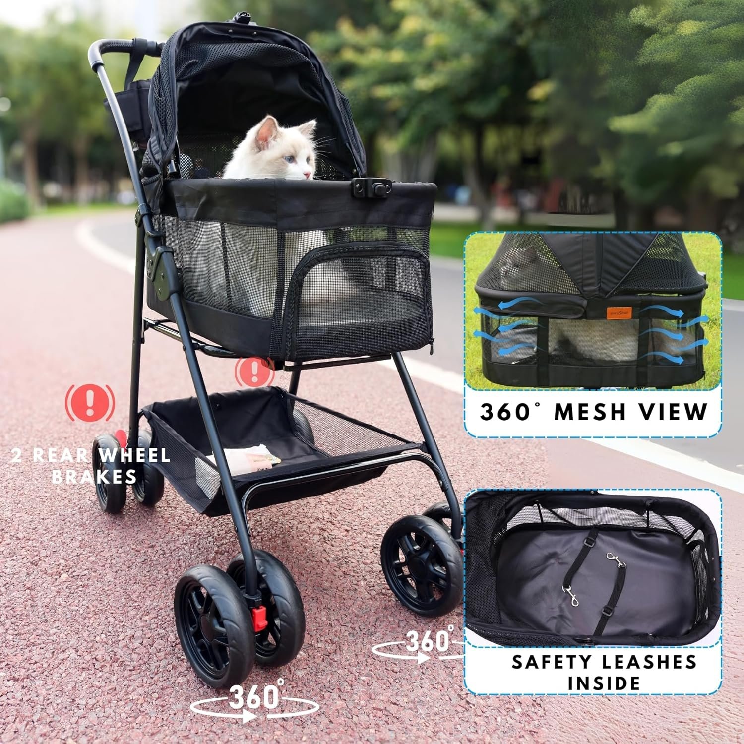 De ultieme 3 in 1 Pet Stroller – Perfect voor dierenartsbezoeken, lange wandelingen of leuke avonturen! Onze afneembare kinderwagen -kinderwagen past zich moeiteloos aan en biedt onverslaanbare functionaliteit en gemak in één strak, veelzijdig pakket. De beste reismaatje van je huisdier!