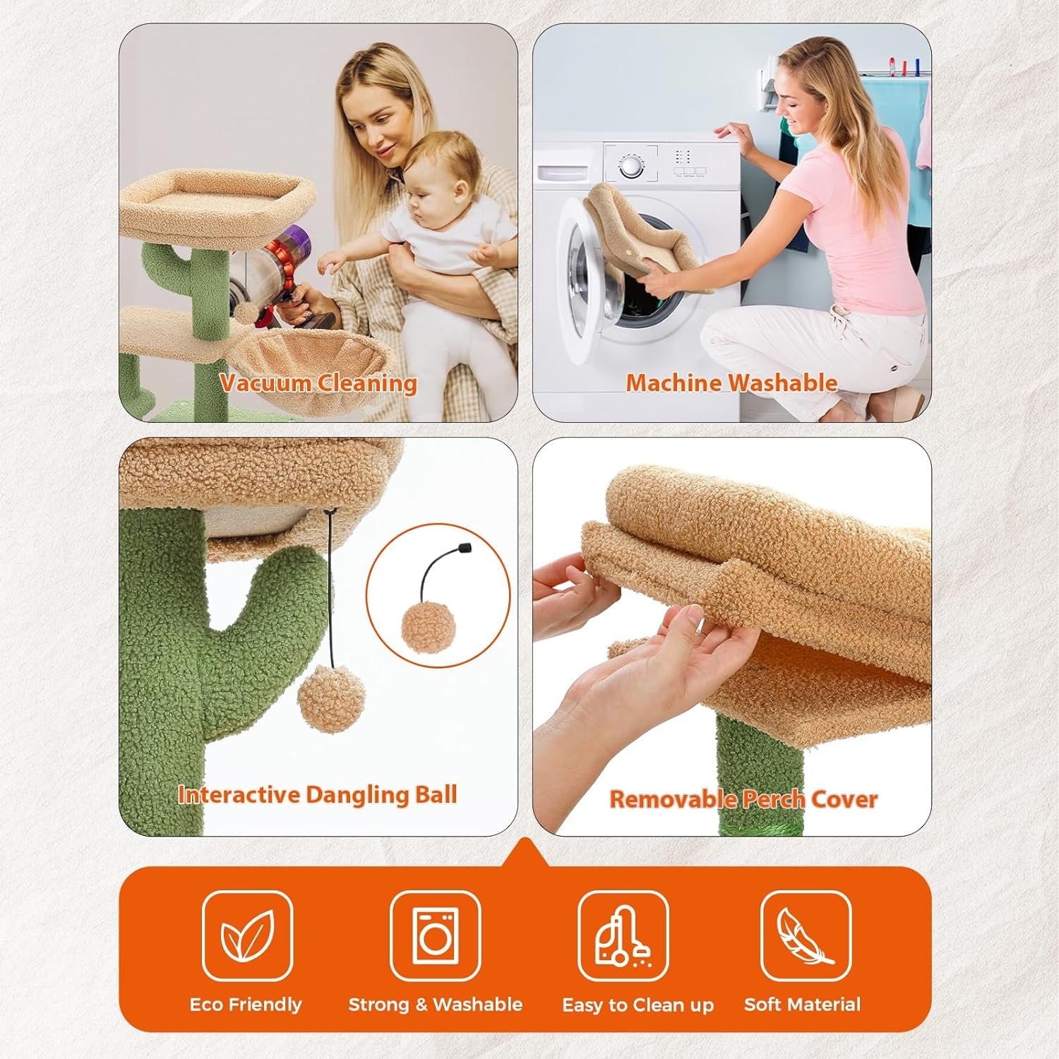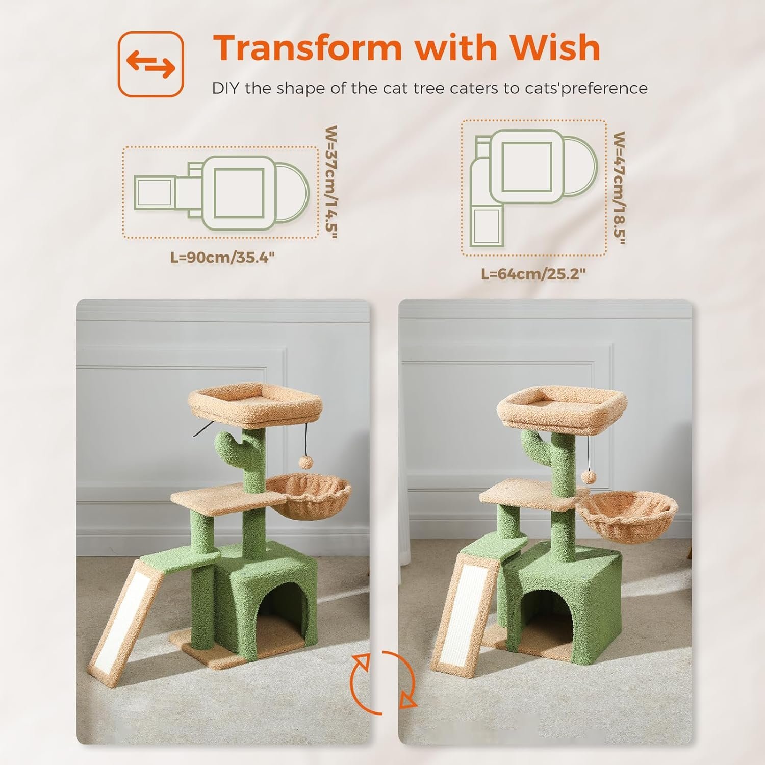 Compact en stijlvol: deze schattige kattenboom voor binnenkatten is ontworpen om in elke ruimte te passen zonder in gevaar te brengen op plezier en functionaliteit. Het stijlvolle Cactus Cat Tree Design voegt een vleugje eigenzinnigheid toe aan uw thuisdecor