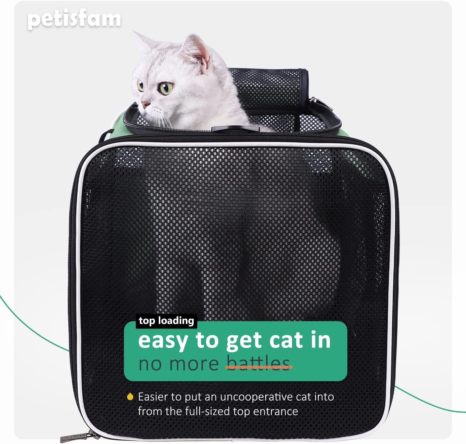 Petisfam Easy Load Pet Carrier voor grote, middelgrote katten, 2 katten en kleine honden met comfortabel bed. Eenvoudig om kat in te krijgen, ontsnappingsbewijs, gemakkelijke opslag, wasbaar, veilig en comfortabel voor dierenartsbezoek en autorit