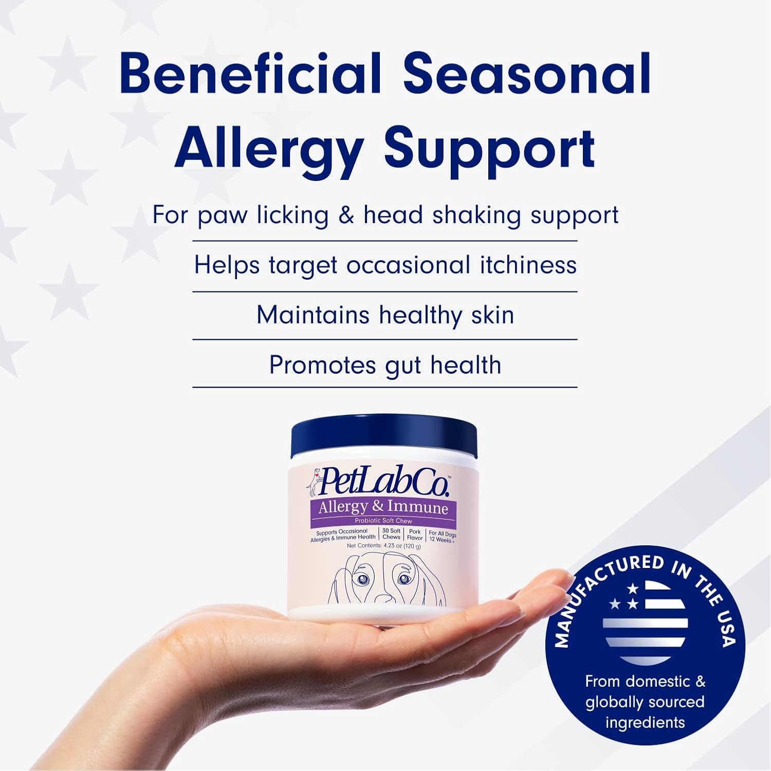 Investeer in de gezondheid van uw hond – Word lid van onze familie van meer dan 4 miljoen honden die de producten van Petlab Co. hebben geprobeerd. Help uw hond te ondersteunen met seizoensgebonden allergieën en bevorderde een gezonde gistproductie met dagelijkse suppletie