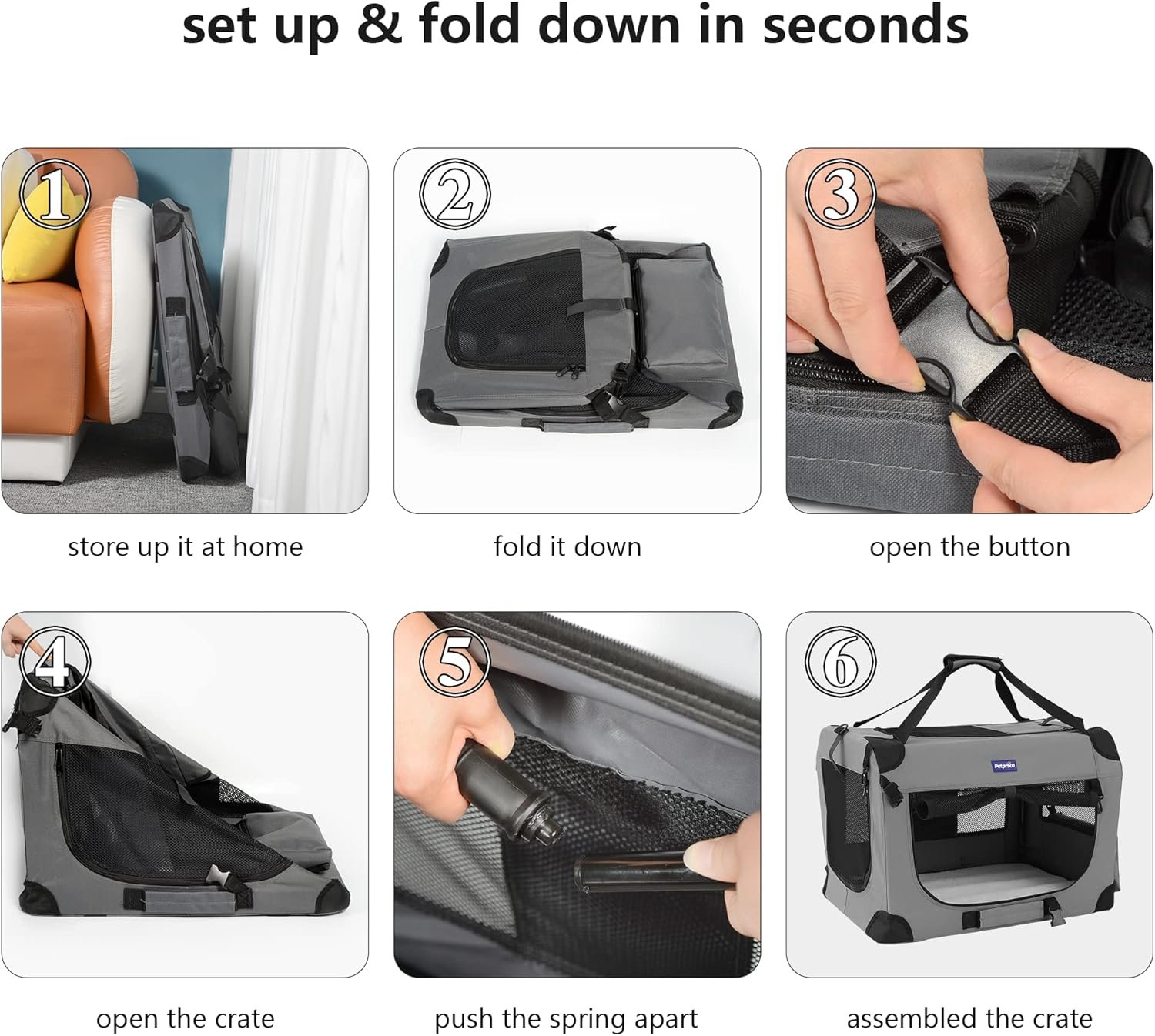 【Grote capaciteit en draagbaar】 Draagbare kleine hondenkrat: 24*17*17 inch, perfect voor grote kat, twee katten of kleine honden (zoals Malteese, Boston Terrier, Mini Schnauzer, enz.). Houd huisdieren vast tot 12-30 pond. De zachte hondenkrat kan in seconden gemakkelijk worden gevouwen/ontvouwen zonder gereedschap, het is gemakkelijk om op te slaan en ruimte te besparen.