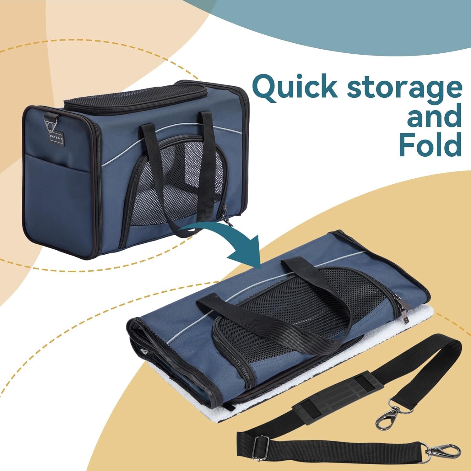 Petsfit Pet Carrier voor CATS Airline goedgekeurd, zachtzijdige hondendrager katdrager, lichtgewicht en opvouwbaar, ontsnappingsbewijs, met verstelbare schouderband, zacht kussen