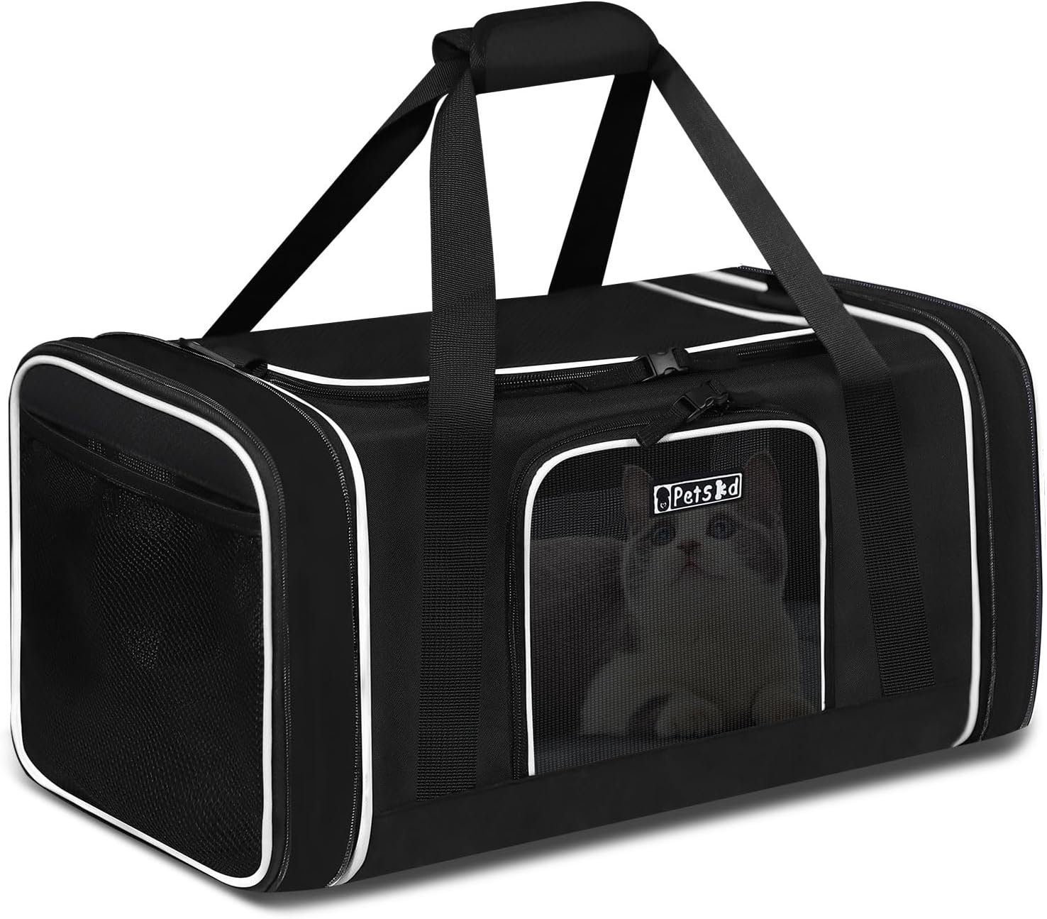 Petskd lengte-expandable huisdierdrager 17x11x9.5 inch Alaska Airline goedgekeurd, zachte huisdier reisdrager voor kleine kattenhonden met ritssluiting en anti-scatch mesh (zwart)