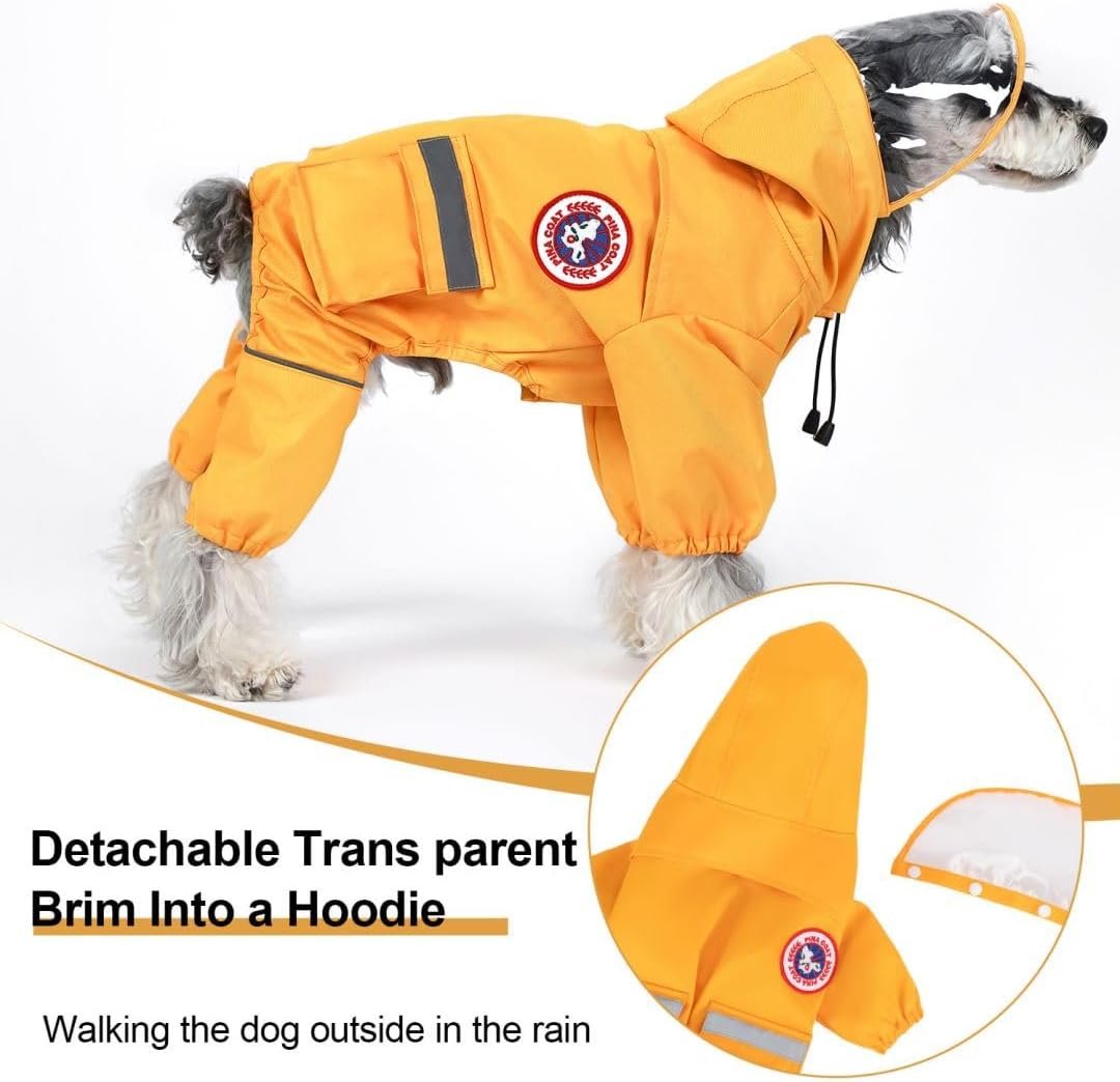 Pina Dog Raincoat – Waterdichte jas voor honden met kap, riem, gat, reflecterende riem en zak voor bescherming van nat weer