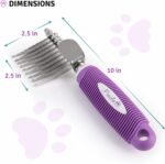 Lange stalen messen: uitgerust met extra lange 2,5 -inch roestvrijstalen dematteringsbladen, dit unieke verzorgingsgereedschap voor huisdieren reikt diep in dikke vacht om snel knopen, matten en twips te breken. Het is de beste verzorging hark voor onderjasborstel!