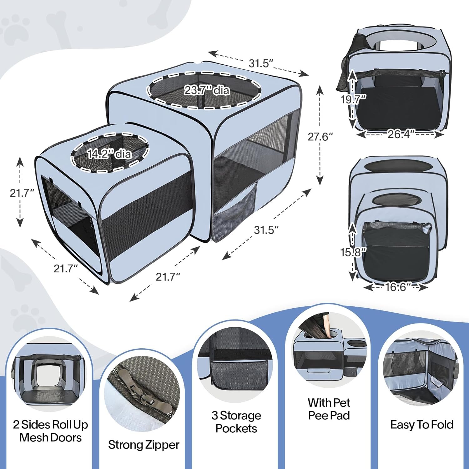 【Neem bonus draagtas en leakpoof Pet Pee Pad】 De draagbare Pet Play Pen -pen wordt geleverd met een handige draagtas en leakpoof Pet Pee Pad, die de opslagruimte gemakkelijk maken. Deze kattenpen bieden huisdieren netjes, ruime en comfortabele ruimte. Perfect voor binnenshuis, buitengebruik, zoals reizen, kamperen en feest.