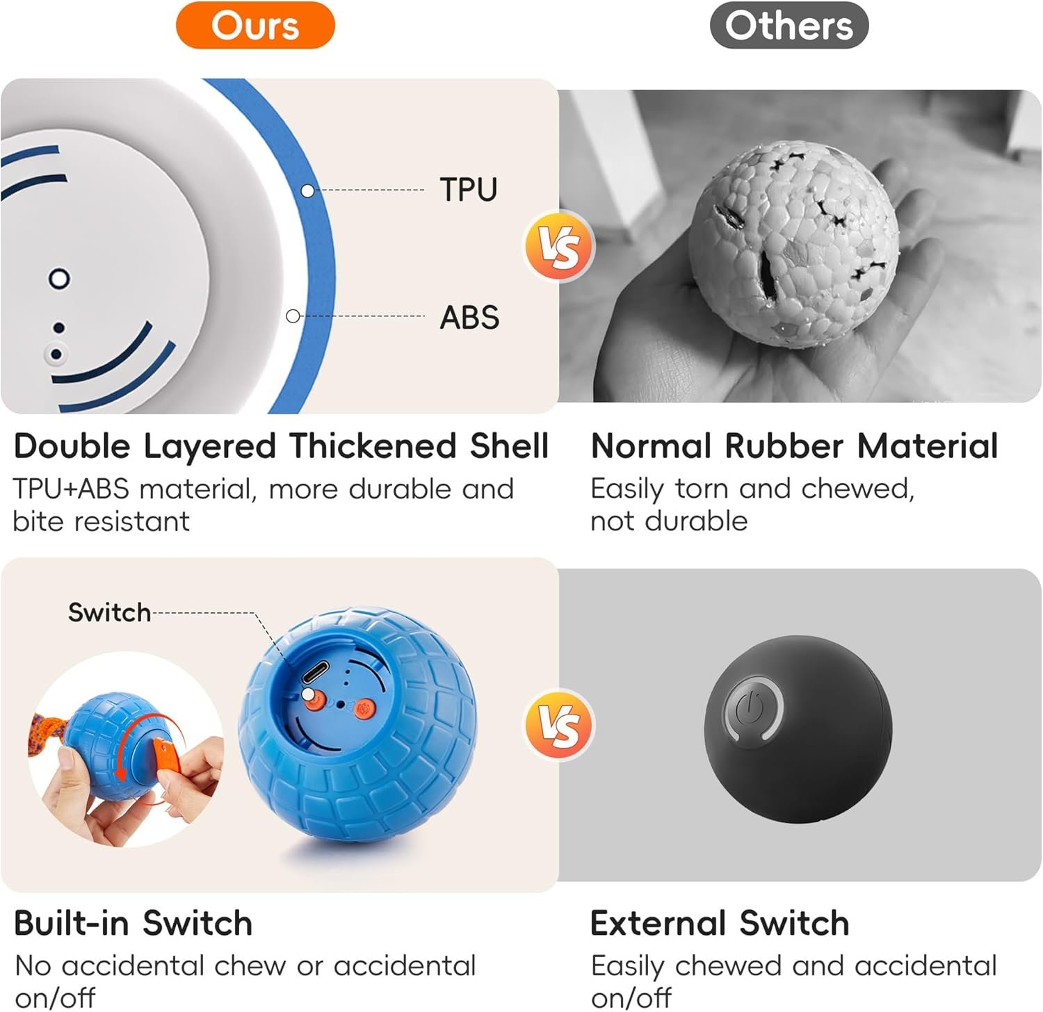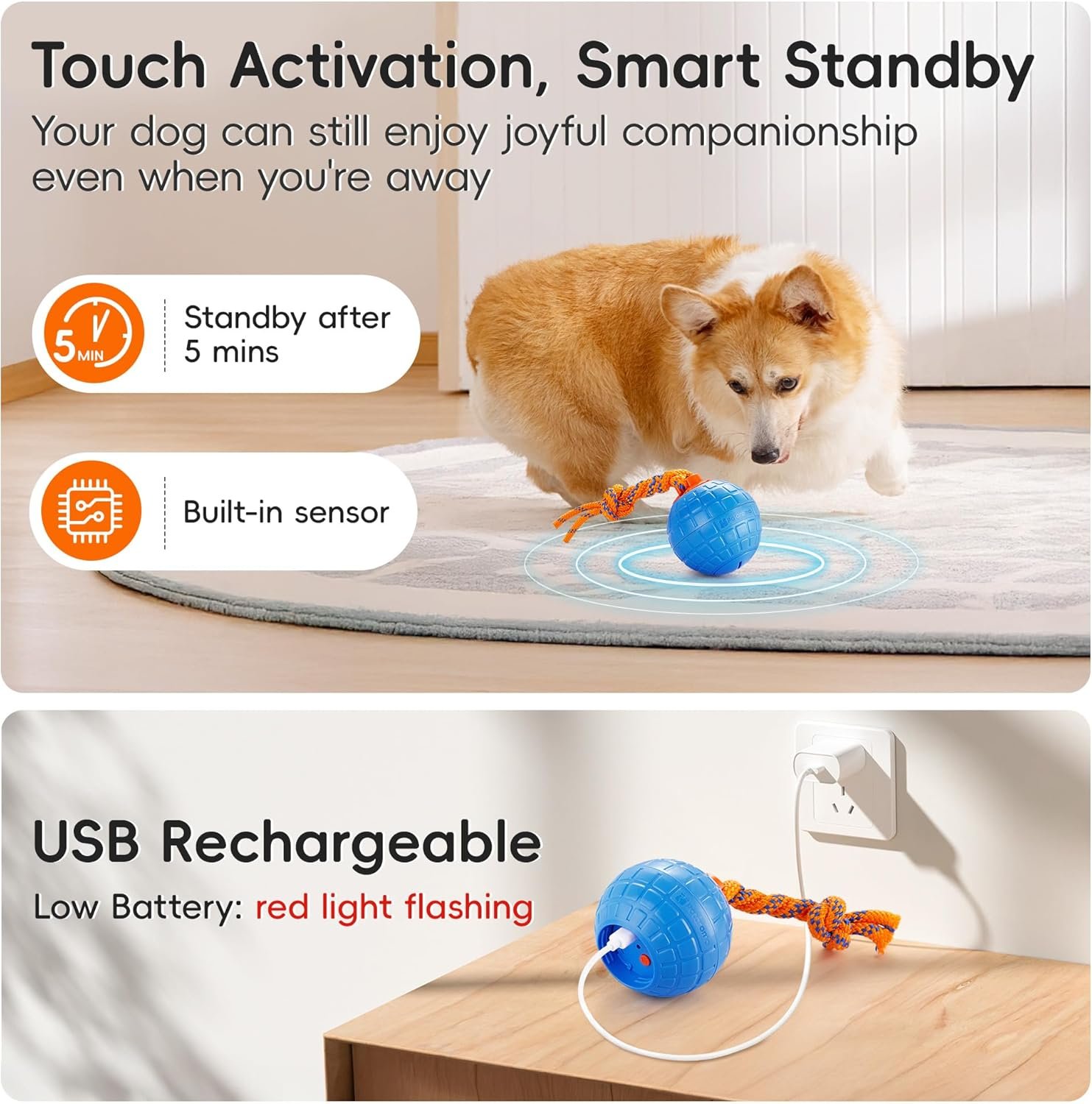USB -oplaadbaar en duurzaam ontwerp – Gebouwd om regelmatig spel te weerstaan, deze oplaadbare bal is ontworpen voor duurzaamheid met TPU -materialen, waardoor het veilig is voor honden die graag kauwen. Het handige USB Type-C-opladen zorgt ervoor dat dit huisdierenaccessoire altijd klaar is om te rollen en te achtervolgen, wat uren elektronisch entertainment biedt.
