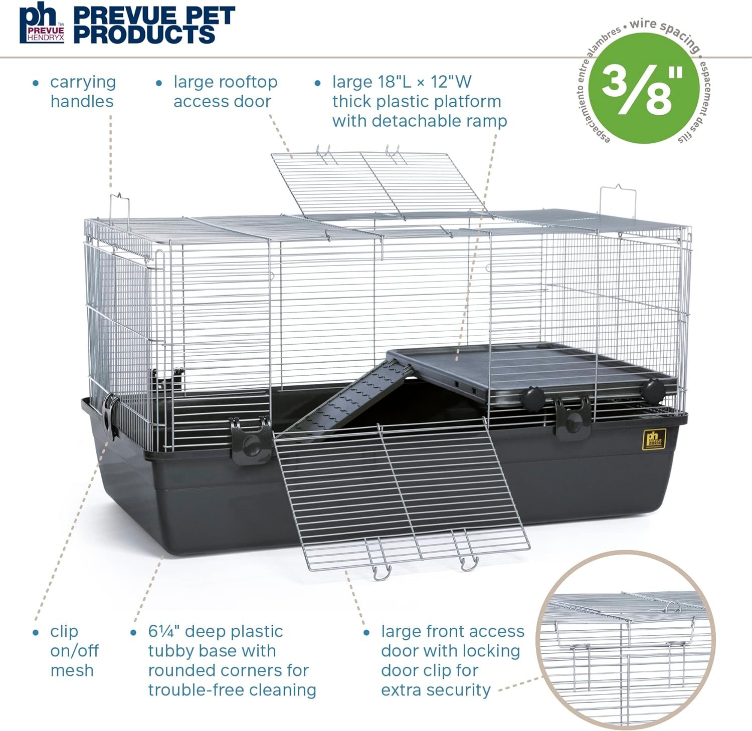 Onze universele kooi met kleine dieren met een diepe tubby creëert een ruim huis voor een breed scala aan kleine dieren. De strakke draadafstand en het afgeronde hoekontwerp zonder knelpunten maakt deze kleine dierlijke kooi geschikt voor kleine huisdieren zoals babyferretten, egels, cavia’s, kleine konijnen, chinchilla’s, suikerlijders, Syrische hamsters, schattige knaagdieren en meer. De huisdierkrat creëert een extra groot huis met een diepe tubby-basis en een breed platform met twistknop sluiting en een brede plastic helling. Ouders van huisdieren hebben comfortabel toegang tot het kooi -interieur via twee grote toegangspunten – een voordeur of dakdeur, elk met een draadvergrendelingsvergrendingsmechanisme. Deze eenvoudig te gebruiken PET-kooi heeft ook eenvoudige snap-on, snap-off mesh, stevig op zijn plaats gehouden met 6 clips. Onze kooi voor kleine dieren is ontworpen in hoge kwaliteit. Deze donkergrijze dierlijke krat is gemaakt van metaalstaal en plastic en meet 32 ​​½ inch lang x 19 inch breed x 17 ½ inch hoog met strakke â…œ inch draadafstand. Onze veelzijdige huisdierenkooi is ideaal voor een breed scala aan huisdieren met kleine dieren en kan ook worden gebruikt als reisdrager voor huisdieren onderweg. Gebruik het kleine universele huis als een normaal huisdierhuis of een kleine dierenreisdrager met handgrepen. Van huisdierenhuisvesting tot revalidatie, zoek de beste dierenkooi met onze andere speciaal gemaakte dierenwoningen voor verschillende huisdieren zoals een chinchilla, cavia, rat, muis, hamster, kat, vogel en meer. Opgericht in 1869, zijn we op zoek naar het verbeteren van het huisdieren en de ervaring met huisdieren. Prevue creëert stijlvolle, functionele, betrouwbare en huisdiervriendelijke producten voor gedomesticeerde dieren en hun families. Onze producten en accessoires omvatten speelgoed, activiteitencentra, kratten, kennels, kooien en meer. Vereenvoudig uw leven terwijl u uw huisdier verbetert – met Prevue!