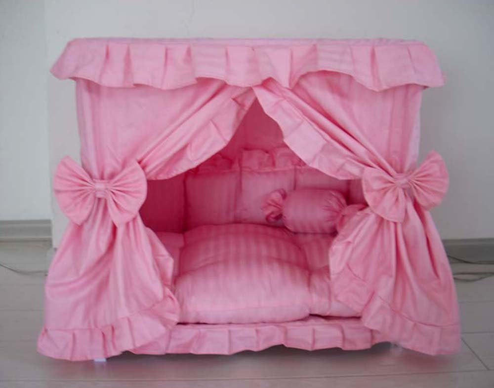 Princess Pink Pet Dog Handmade Bed House+1 Candy Pillow (M)