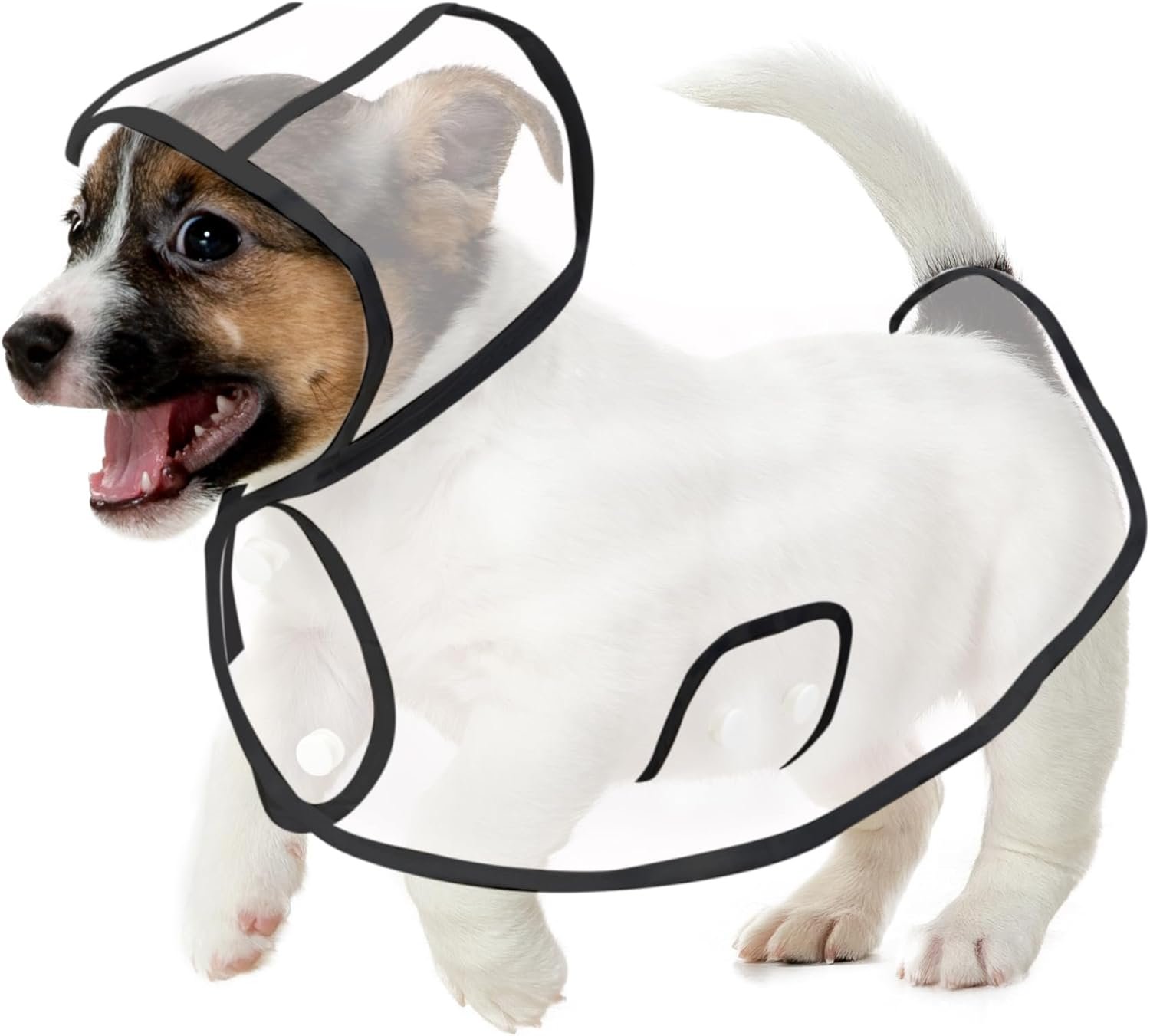 Puppy regenjas voor kleine honden zwarte rand transparantie Pet Raincoat waterdichte mantel huisdier in de kap met een kap, maat medium