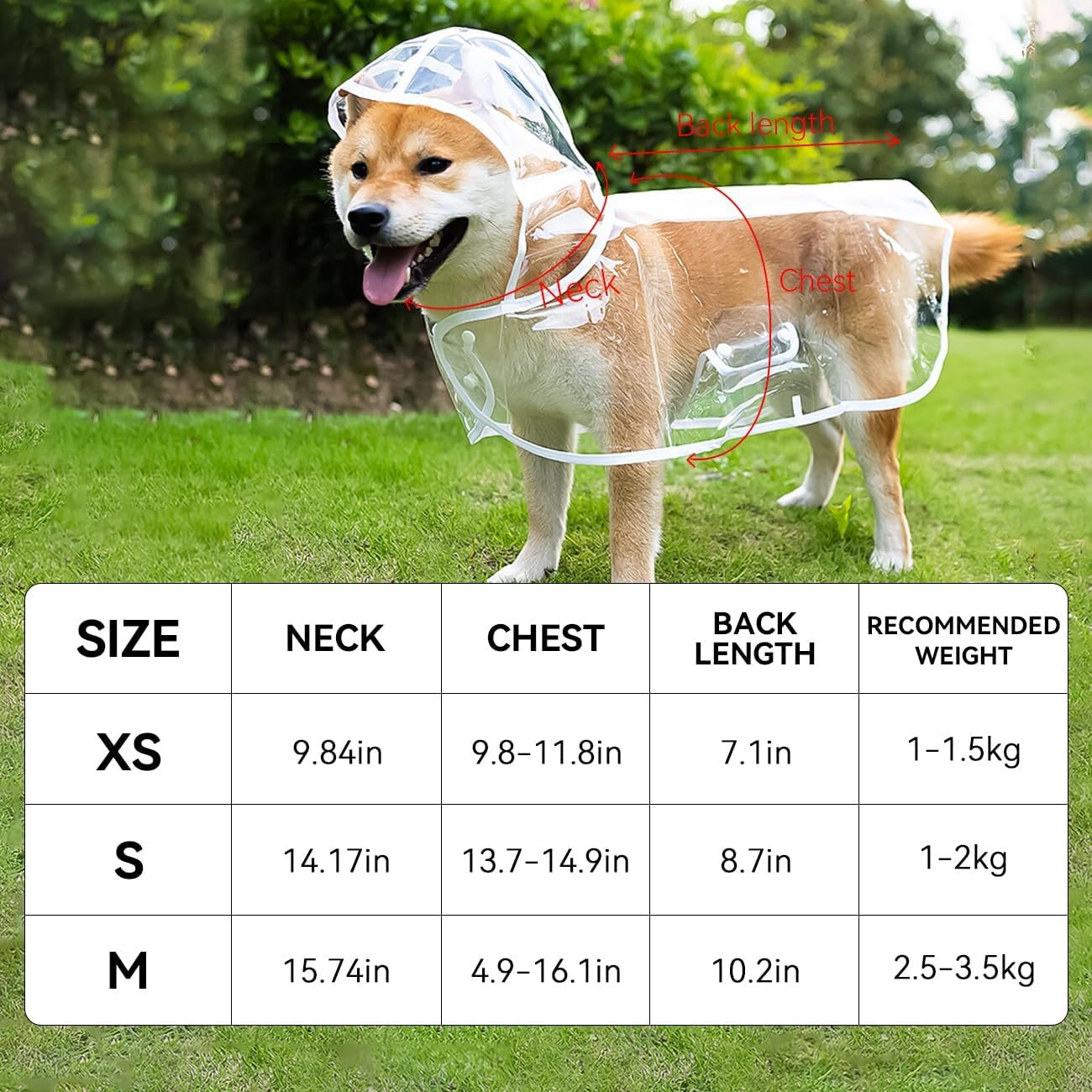 Transparante waterdichte regenjas in poncho-stijl, die de zichtlijn niet blokkeert en handiger is om te dragen. Laat uw hond op regenachtige dagen buiten wandelen en blijf droog en comfortabel.