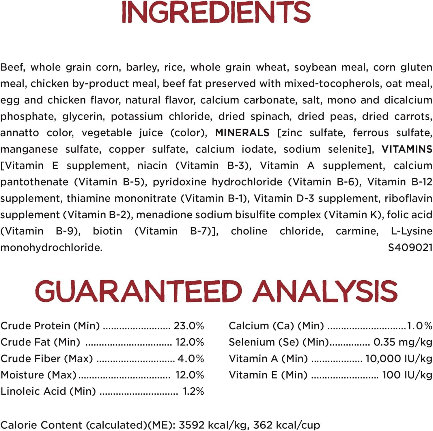 Maak maaltijd voor uw hond zo lekker als het voedzaam is met Purina, begunstigde originelen met boerderijgeleid rundvlees volwassen hondenvoer. Met een geweldige smaak, maar zonder kunstmatige smaken of conserveermiddelen, beschikt deze gezonde hondenvoeding brokjes met echt boerderij-verhoogde rundvlees als het nummer 1-ingrediënt en levert 23 g eiwit voor honden in elke beker om sterke, gezonde spieren te ondersteunen. Purina Boodly Originals Premium hondenvoer is rijk aan antioxidanten voor honden om een gezond immuunsysteem voor uw hondengezel te ondersteunen, en het bevat 23 essentiële vitamines en mineralen om hun algehele gezondheid te ondersteunen. Dit smakelijke purina droge recept voor volwassen hondenvoer biedt 100 procent complete en evenwichtige voeding om uw hond te helpen gedijen, zodat ze hun beste leven aan uw zijde kunnen leiden. Open een voordelige originelen met boerderij-opgeheven rundvleeshondentas om hun maag te vullen met echte, gezonde ingrediënten en hun hart met je liefde voor een gelukkig, gezond leven samen.
