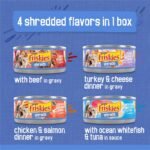 Purina Friskies natte kattenvoedsel variëteit pakket, flarden met rundvlees, kalkoen en kaasdiner, kip en zalmdiner, en met oceaanwitvis en tonijn – (pak van 40) 5,5 oz. Blikken