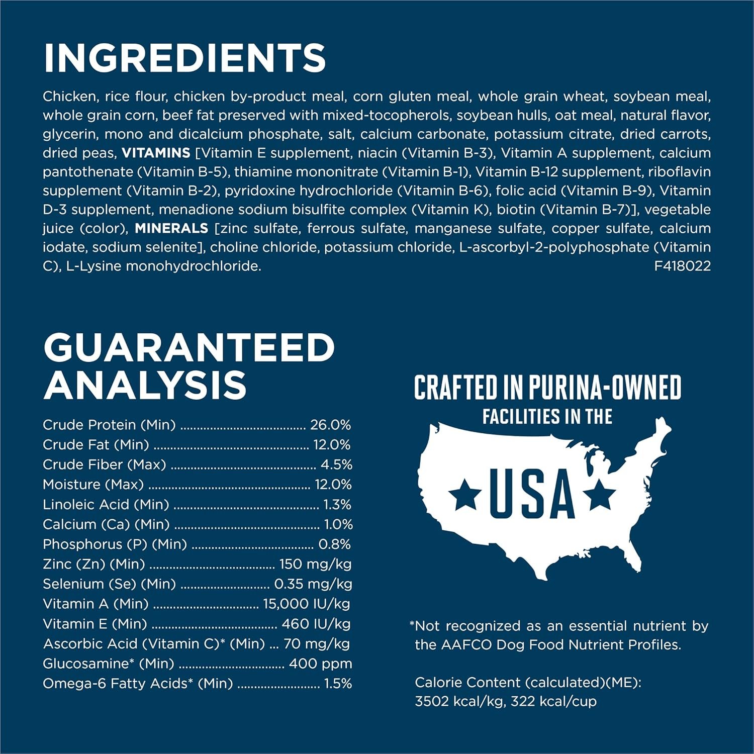 Hoge eiwit hondenvoer vervaardigd in purina-eigendom, Amerikaanse faciliteiten bieden 100 procent voeding voor volwassen honden