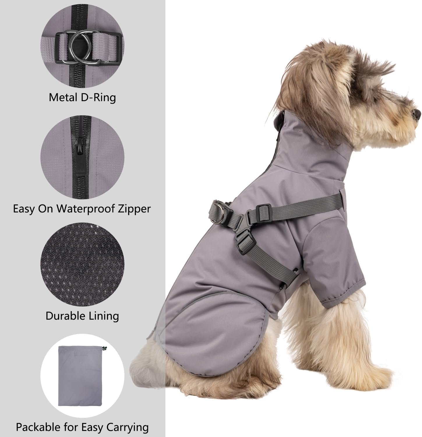 Regenjas voor kleine middelgrote honden, waterdichte regenjas met harnas ingebouwd voor nat weer, gemakkelijk draagbare reflecterende slicker, grijs, l