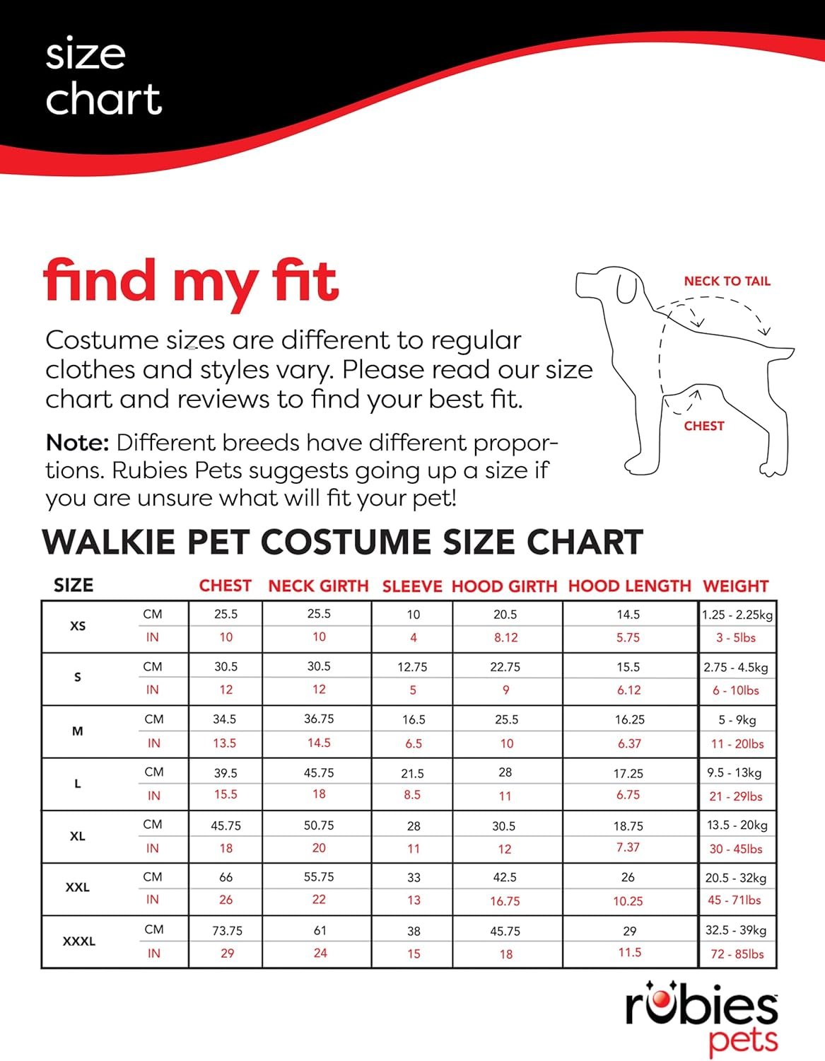 Lees de Rubie’s Pet Grootte -grafiek en bekijk de grootte -instructievideo, selecteer geen maat op basis van ras
