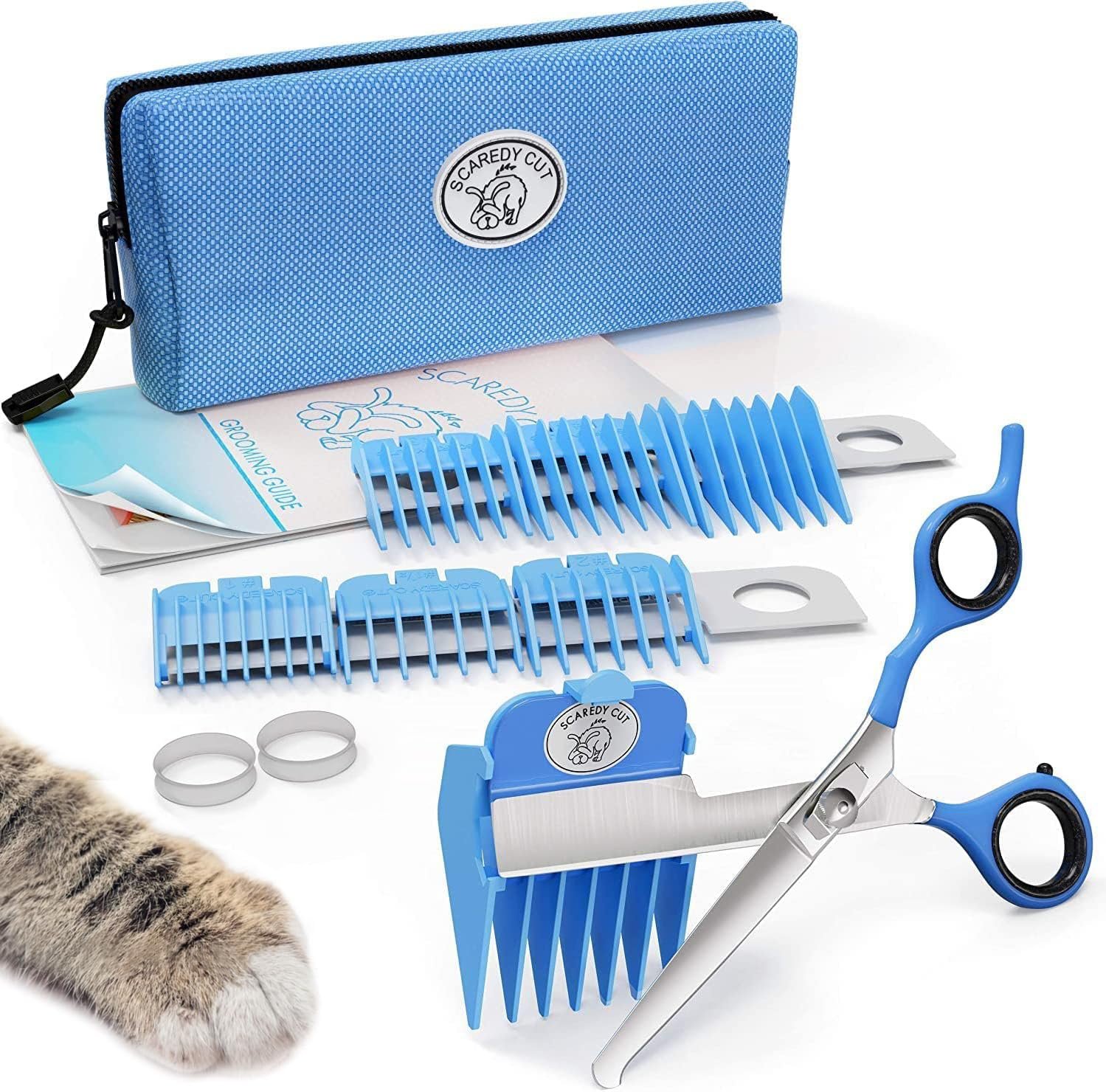 Scaredy Cut Silent Pet Grooming Kit voor honden, katten en alle verzorging van huisdieren – een rustig alternatief voor elektrische knippers voor gevoelige huisdieren (rechtshandig blauw)