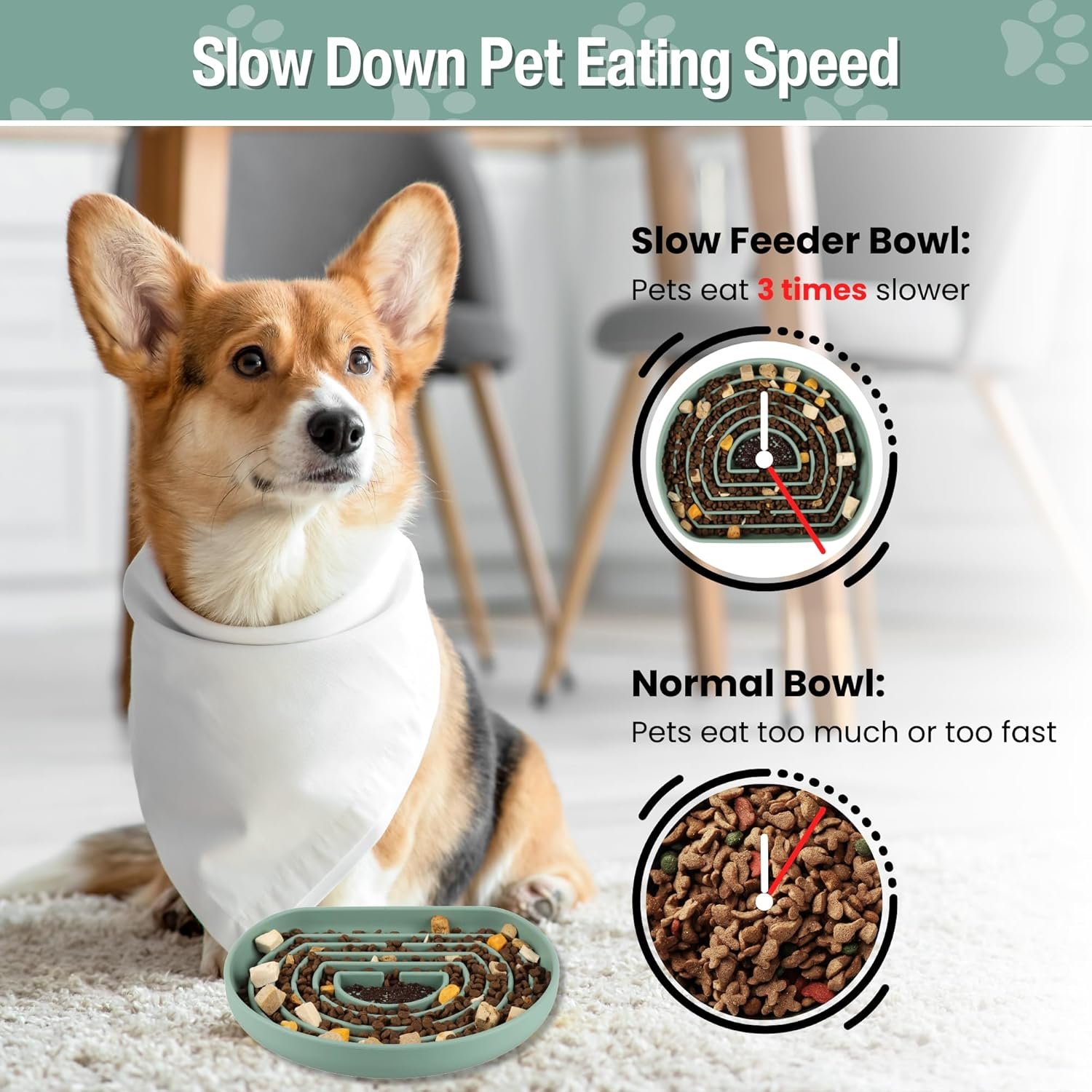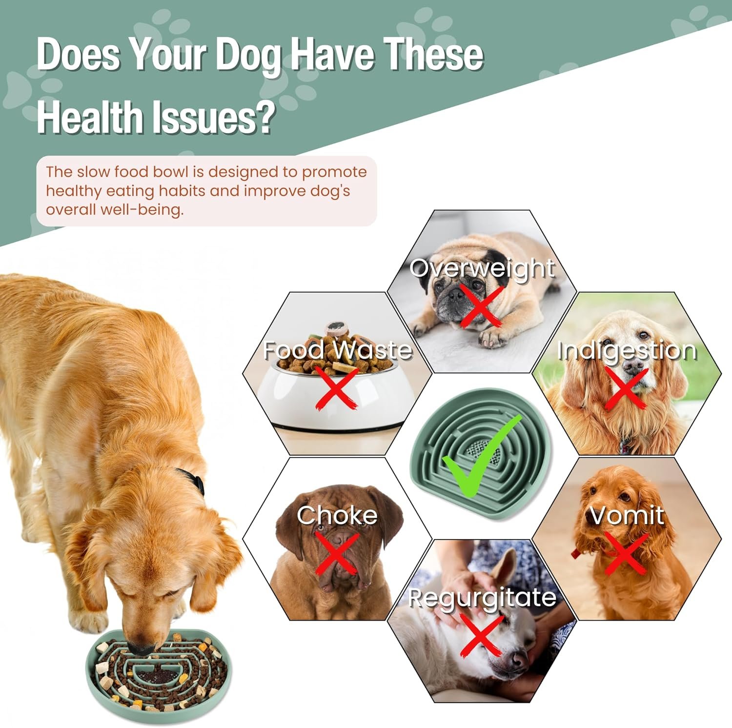Langzame feeder: onze langzame feeder ontworpen om langzamere eetgewoonten te bevorderen voor verbeterde spijsvertering en verminderd ongemak. De wetenschappelijk bewezen voordelen van het vertragen van consumptie zijn nu gemakkelijk haalbaar met het unieke puzzelontwerp van deze kommen, waardoor je harige vriend van elke hap kan genieten.