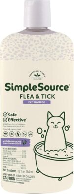 Simplesource® Flea & Tick Shampoo voor katten, doodt vlooien, vlooieneieren, vlooienlarven en teken, & muggen, Cleans & Deodorizes, 12oz fles