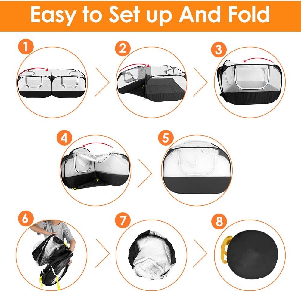 Op grote schaal toepassing — De ademende mesh-stof van de cavia-kooi biedt een betere ventilatie, houdt uw huisdier dichter bij de natuur. Binnenshuis is de tent ideaal voor honden, katten, een gewond huisdier isoleren of een nieuw huisdier introduceren. Geschikt voor het opvoeden van kippen, eenden, konijnen en andere kleine dieren