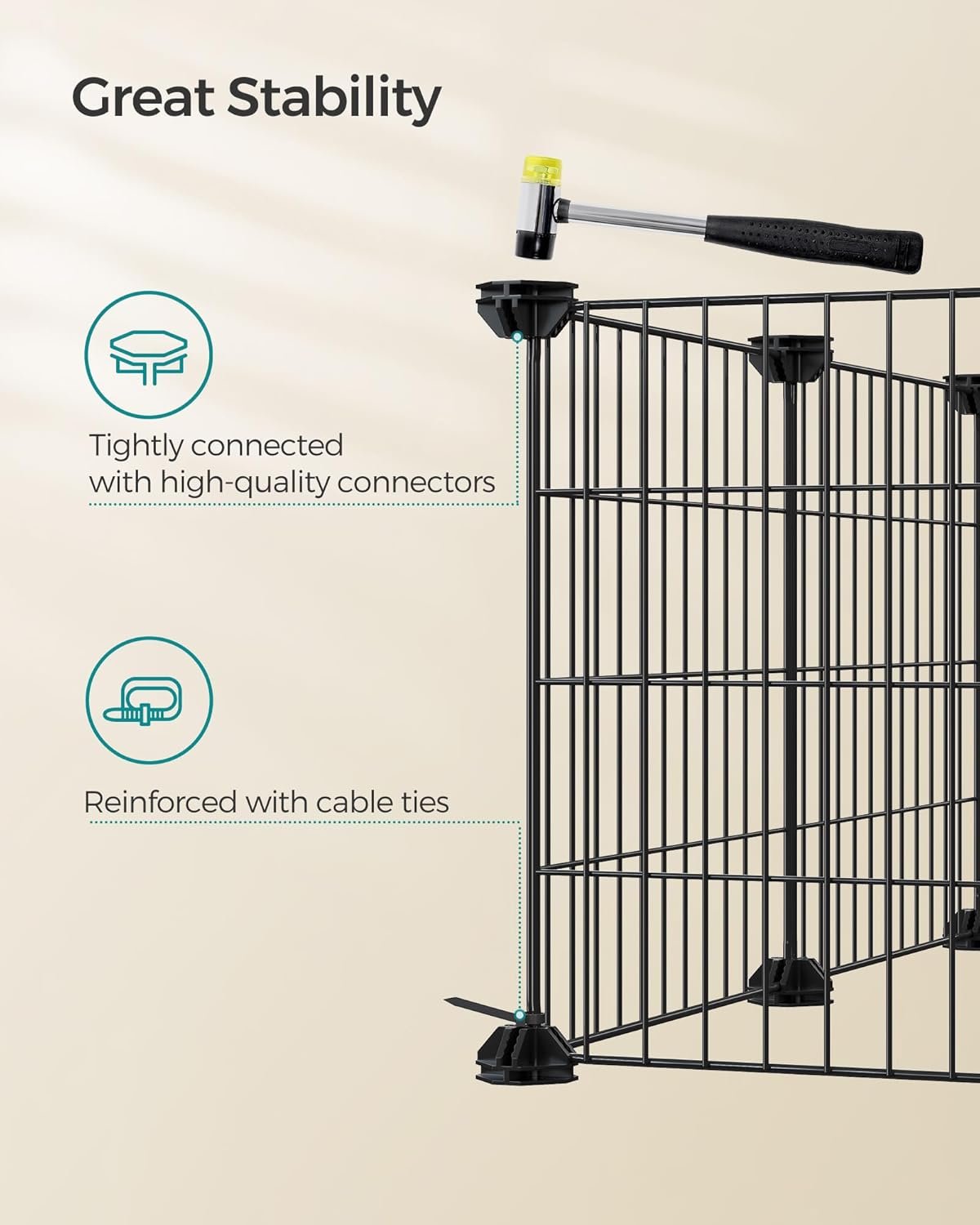 Met 36 draadmaaspanelen en 40 ABS plastic connectoren kunt u het in verschillende vormen aanpassen. Vul het met een paar spellen, een kinderbedje en een kom met water om een koninkrijk te creëren waar je dier zich als een koning voelt.