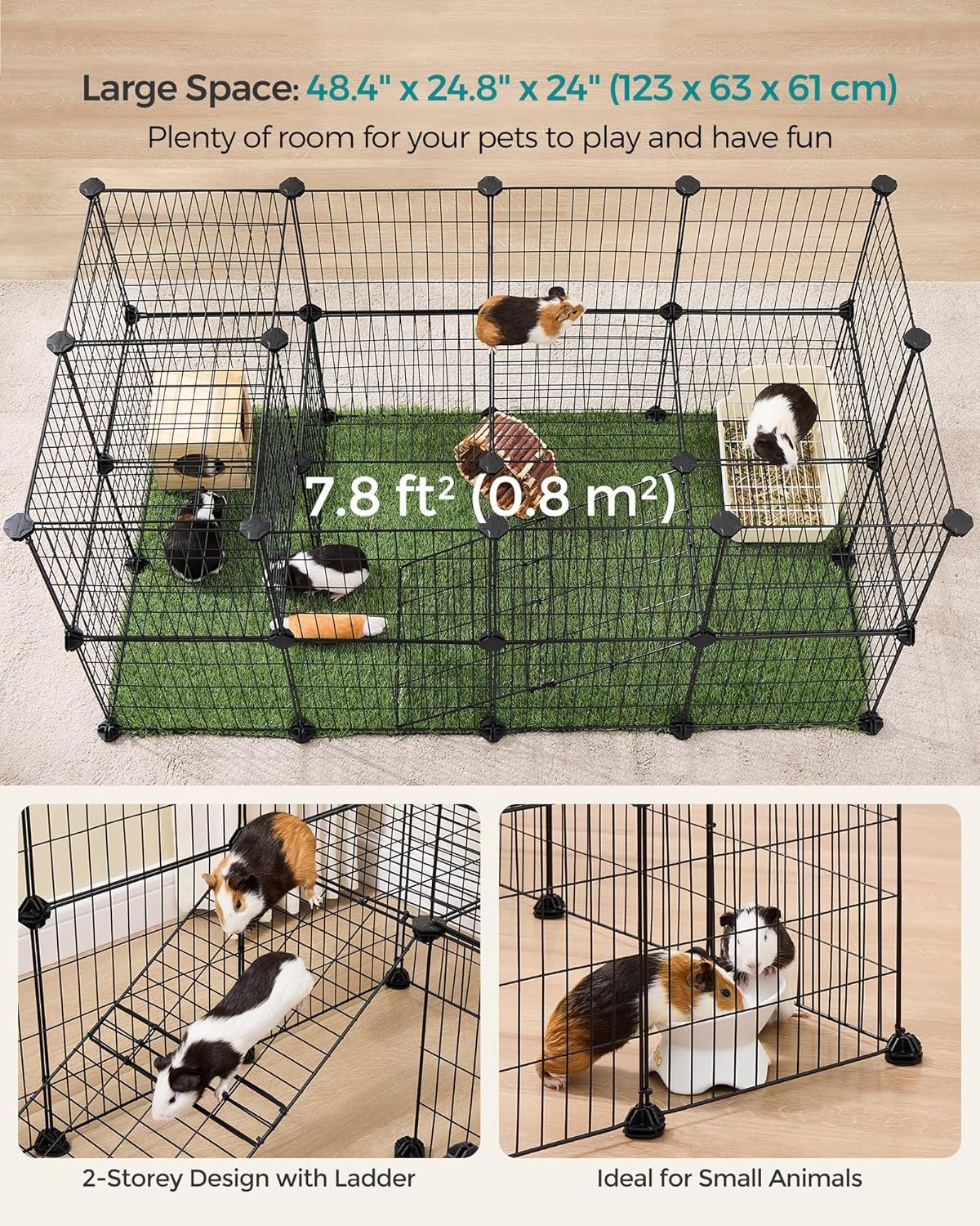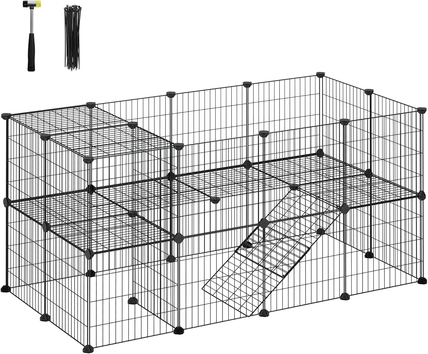 Songmics 36 Panelen Pet Pladen, Small Animal Playpen, Rabbit Guinea Pig Cage, Zip Ties inbegrepen, metalen draad appartementstijl met twee verdiepingen tellende PET Premium Villa voor konijnenpuppy’s, indoorgebruik, Black Ulpi002B01