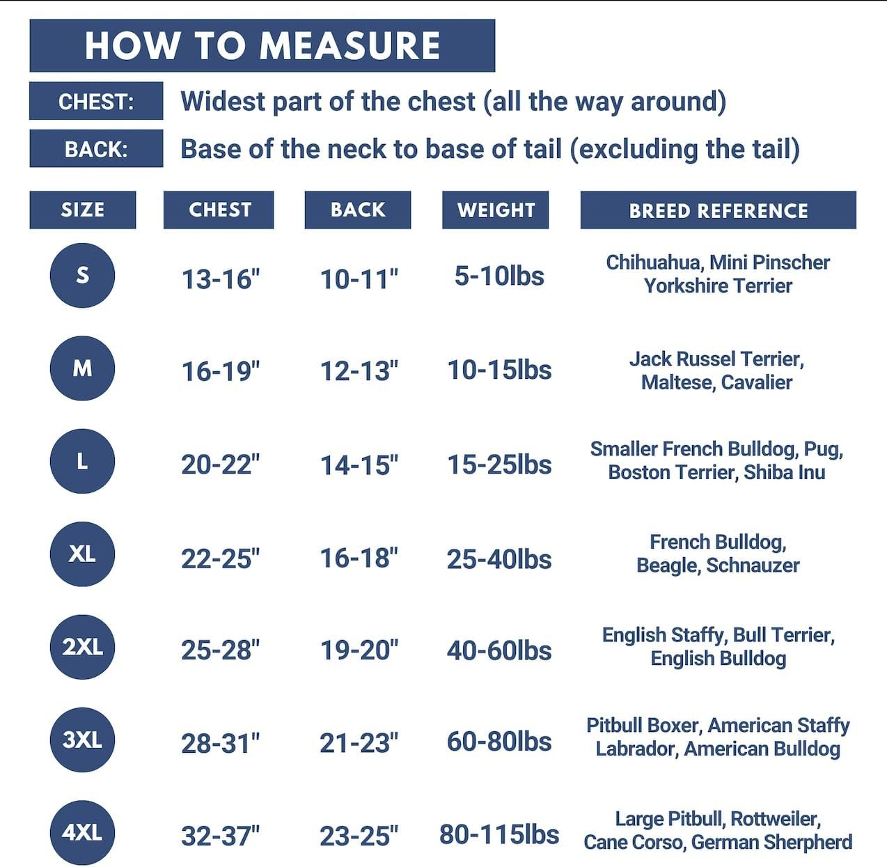 De “fit” is net zo belangrijk! We hebben duizenden honden gemeten, waardoor een uitgebreide database met hondenafmetingen wordt gecreëerd om ervoor te zorgen dat onze uitrusting elke pup als een handschoen past.