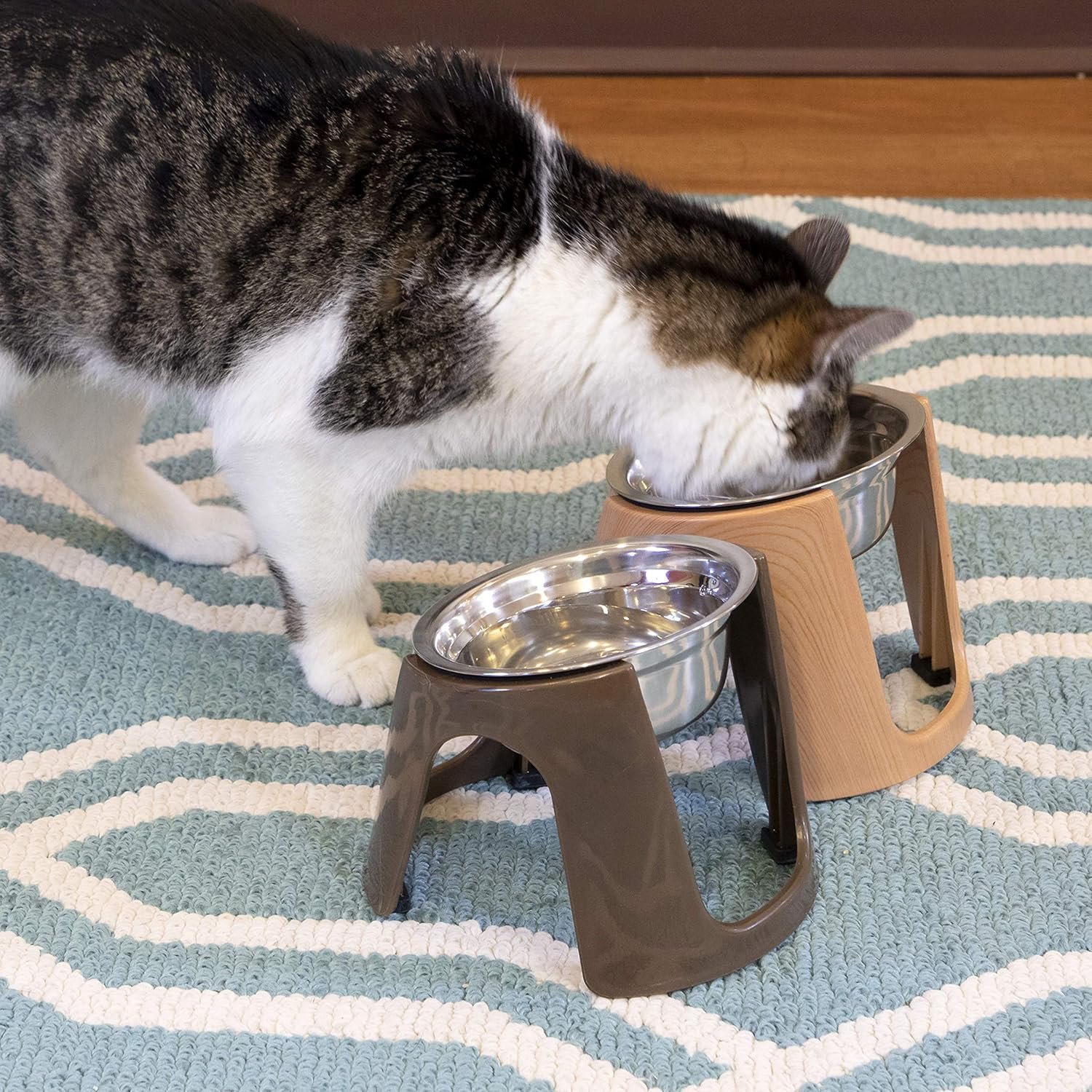 De natuurlijke eetpositie van huisdieren is hoger van de grond dan uw gewone eten of drinken. Wil je haar een letterlijke pijn in de nek redden? Gebruik in plaats daarvan een set verhoogde kattenkommen van SP. Het verhoogt voedsel en water enkele centimeters van de vloer zodat uw huisdier tijdens het diner kan krijgen zonder zich uit te rekken of te bereiken. Ze komen in een modern-ontwerppaar en zien er goed uit in de hoek van uw keuken of woonkamer. En dankzij de plastic basis en de constructie van roestvrijstalen kom, kan het opruimen niet eenvoudiger zijn – gooi ze gewoon in het bovenste rek van je vaatwasser en druk op Go.