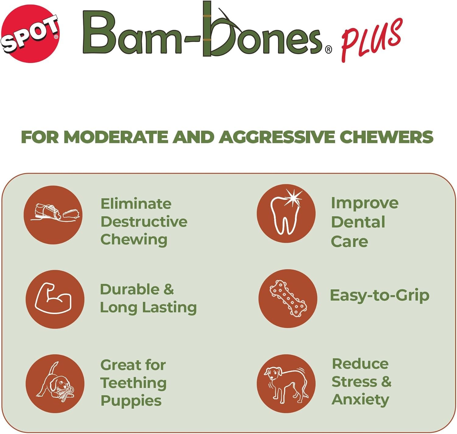 Spot bam-botten plus t bone-bamboe vezel en nylon, duurzaam langdurige honden kauwen voor agressieve kauwers-geweldig speelgoed voor volwassen honden en kinderziektes onder de 60 pond, niet-splintering, 6in, rundvleessmaak
